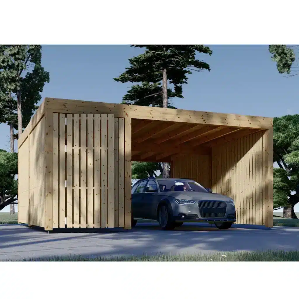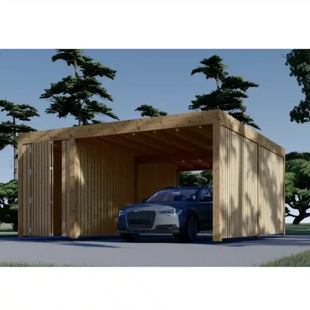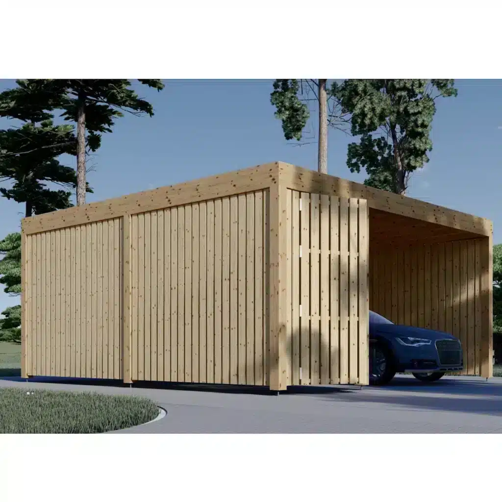 Sellel autovarjualusel on 2 vertikaalse paneeliga puitraamist külgseina, mis pakuvad teie sõidukile suurepärast kaitset. Lisaks saab autovarjualuse konstruktsiooni hõlpsasti täiustada lisapaneelidega meie lisatarvikute hulgast, mis võimaldab külgseinu lisada või eemaldada.