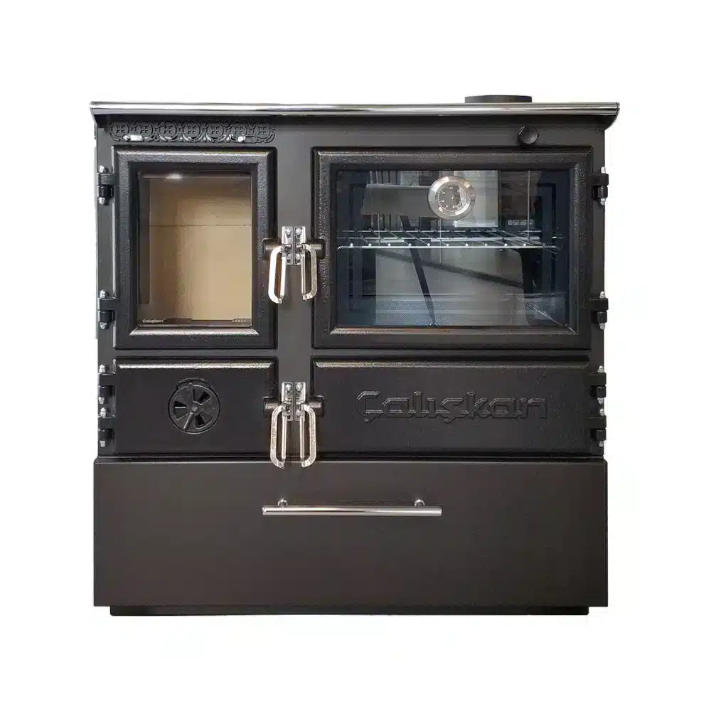 ÇALIŞKAN 214-3D-BOX on multifunktsionaalne puuküttega ahi, see on fantastiline meistriteos igas toas, see suudab soojendada teie suurt tuba oma kõrge energiatõhususega, kuid samal ajal võite ideaalselt küpsetada oma toite selle ahjus hästi kujundatud soojusrajaga. Te saate tõesti maksimaalselt ära kasutada iga puutükki, mille sisse panete. Selles pliidis on ahju ventilatsiooniklapp, mis juhib toidulõhnad läbi korstnaühenduse ahjus sees, nii et toidulõhnad ei levi küpsetamise ajal tuppa.