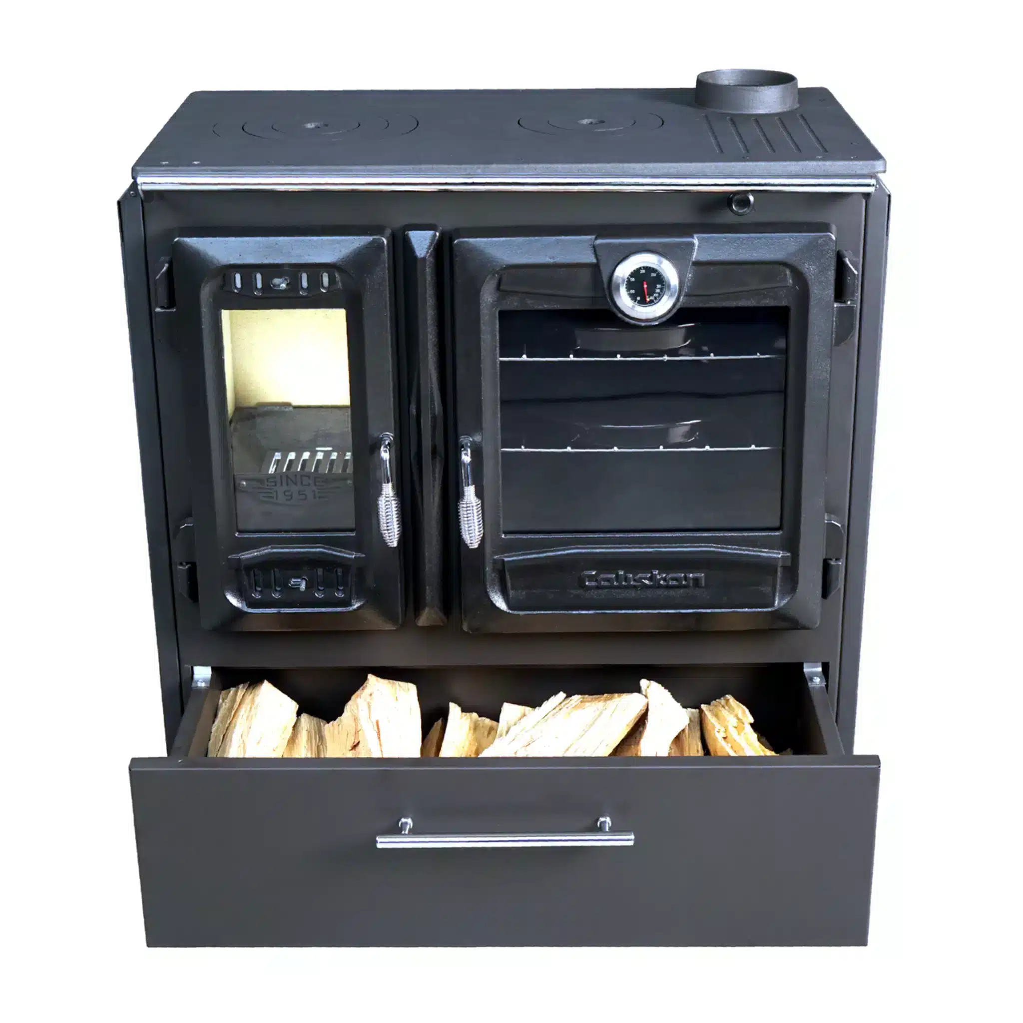ÇALIŞKAN 214-korpus on multifunktsionaalne puuküttega ahi, see on fantastiline meistriteos igas toas - see suudab soojendada teie suurt tuba oma kõrge energiatõhususega, kuid samal ajal võite ideaalselt küpsetada ka toitu selle ahjuga. Te saate tõesti maksimaalselt ära kasutada iga puutüki, mille sisse panete. Ahjul on nutikas õhuventiilide liugur, mis juhib toidulõhnad läbi korstnaühenduse ahjus sees, nii et toidulõhnad ei levi küpsetamise ajal tuppa.