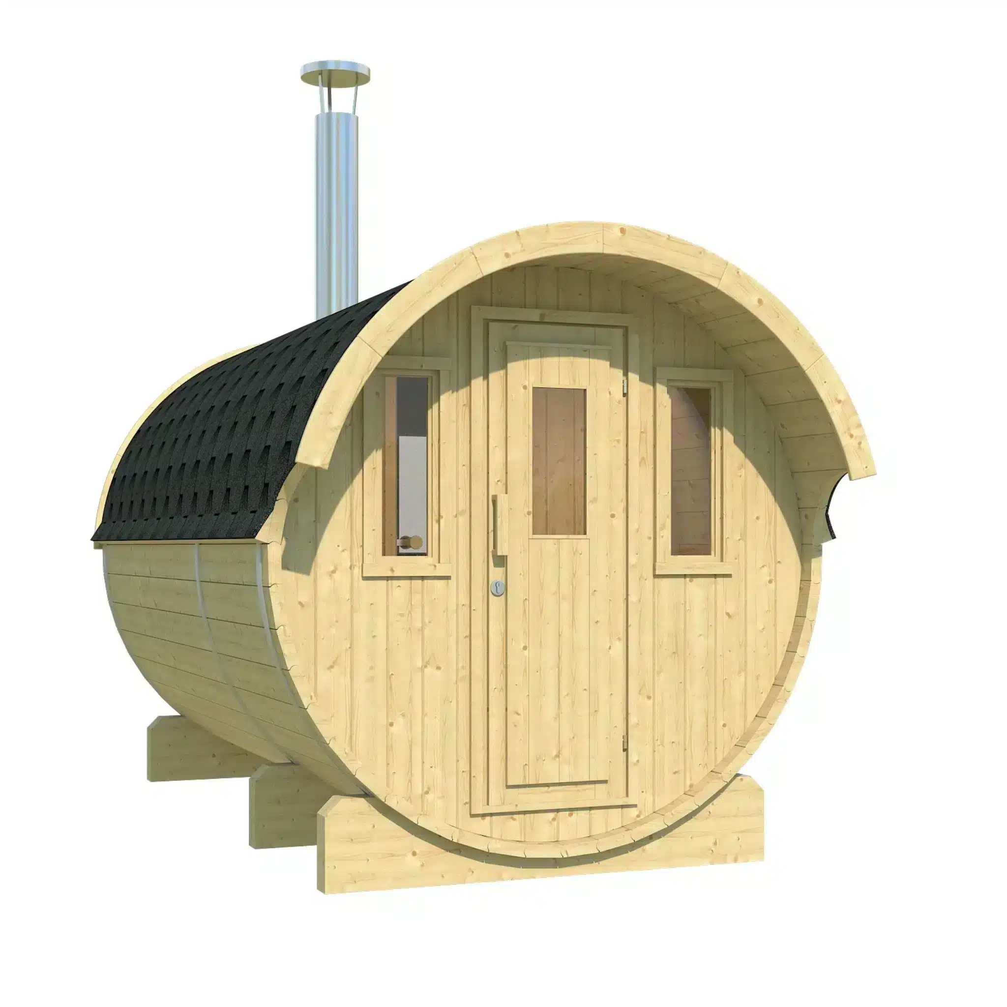 Naudi lõõgastust ja praktilisust oma koduõues või suvekodus Ehala 330 tünnisaunaga. Selle eraldi riietusruum ja kvaliteetne põhjamaine kuuse konstruktsioon tagavad pikaealise ja mugava saunaelamuse.