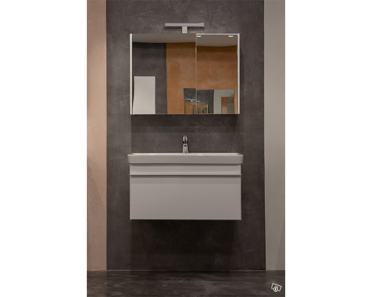 Vannitoakomplekt Flatty 80 mööbel, mida on lihtne paljudes ruumides kombineerida. Kollektsioon on väga kvaliteetne, selles on kasutatud parimaid materjale ja uusimat küttetehnoloogiat. Aeglaselt liikuvate siinide ja hingede abil sulguvad uksed ja sahtlid pehmelt ja hääletult.