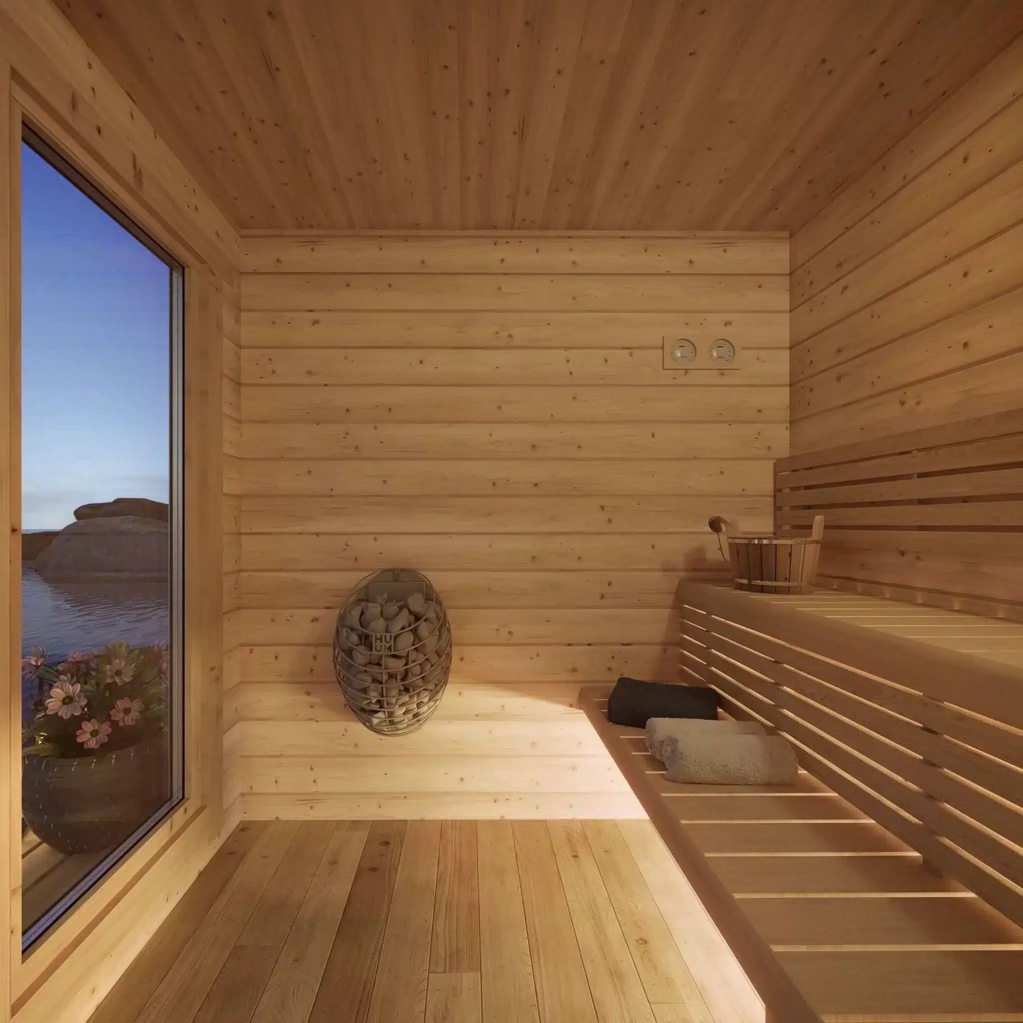 “Hiid” saun ühendab modernse disaini, kvaliteetsed materjalid ja funktsionaalsuse, olles ideaalne valik väiksematele õuealadele. Selle praktiline paigutus, põhjamaine stiil ja vastupidav konstruktsioon pakuvad lõõgastumisvõimalust otse teie aias. “Hiid” Saun on kompaktne, kuid luksuslik saun, mis ühendab stiili, praktilisuse ja vastupidavuse. Olgu otsingul privaatne lõõgastumispaik või pilkupüüdev lisandus aeda, see saun pakub esmaklassilist saunaelamust.