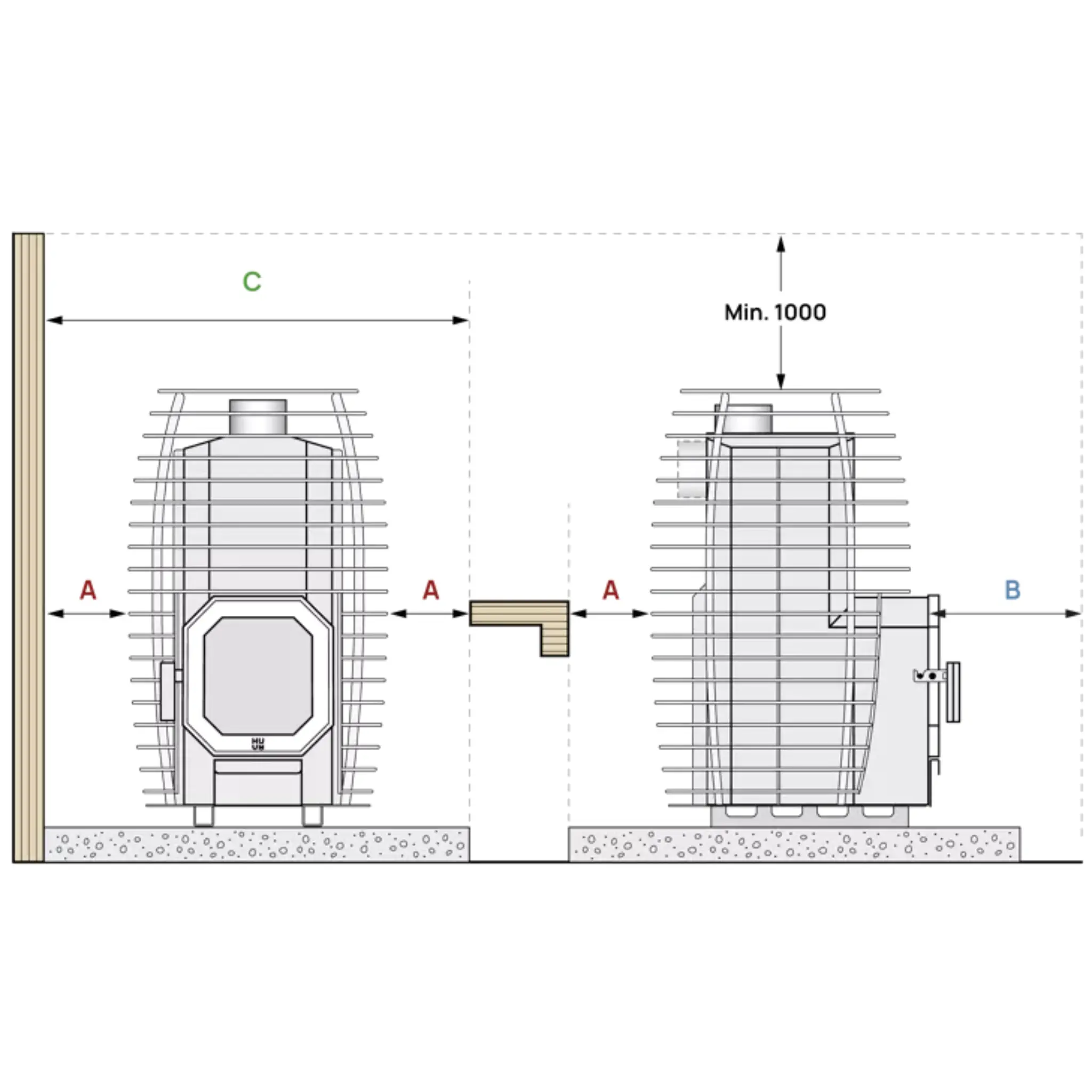 HIVE Flow Mini ja Mini LS mahutavad 105 kg kive. Korstnavõrega saab juurde lisada veel 35-40 kg kive.