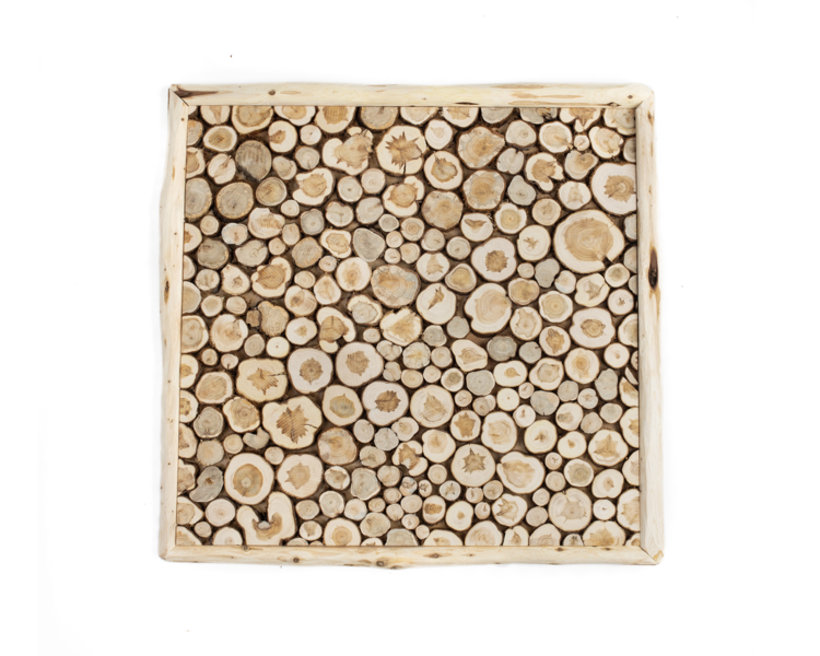 Paneel on valmistatud niiskuskindlast vineerist ja kadakatüvest lõigatud seibidest.