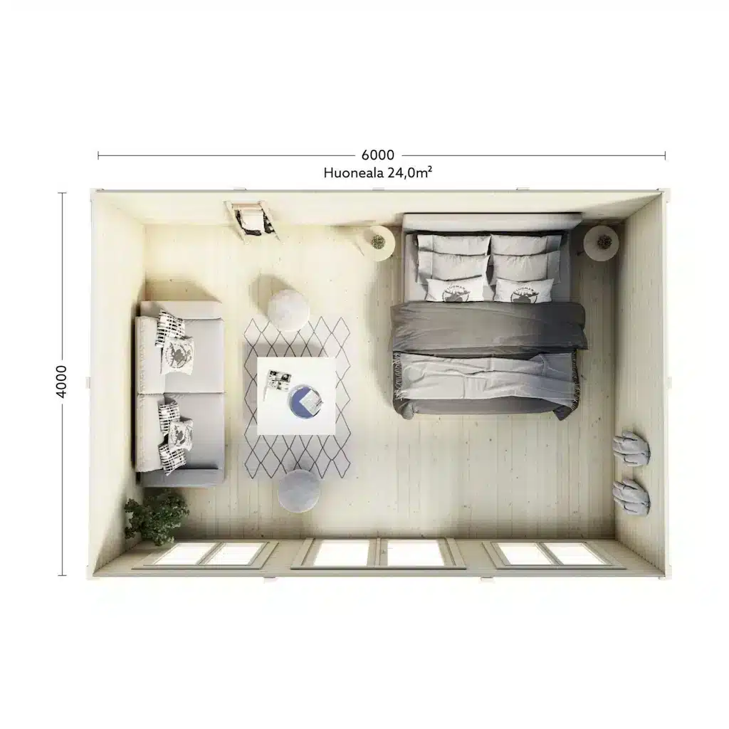 Põrandapindala: 24 m² (laius: 6 m, sügavus: 4 m)