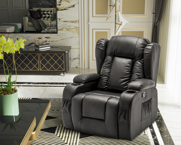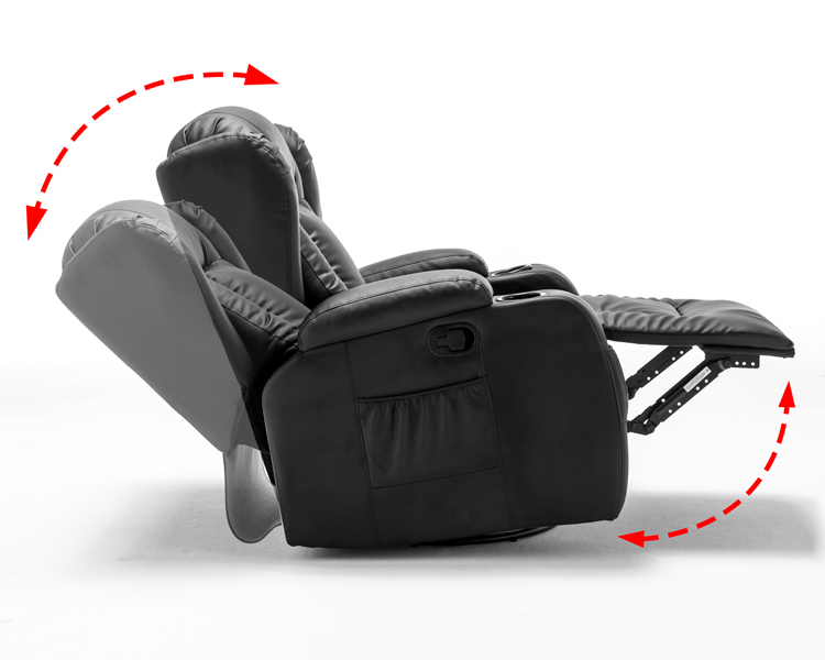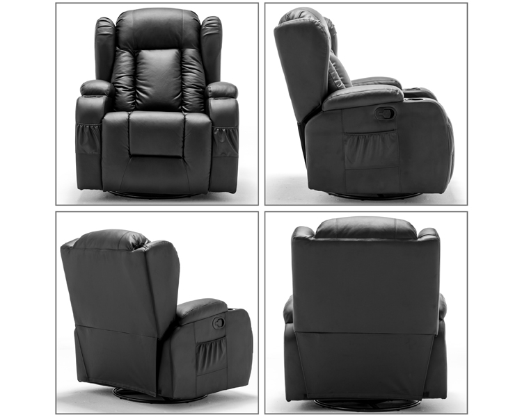 Kvaliteetse kunstnaha polsterdusega ning tihke pehmendusega istme ja seljatoega pöörlev tugitool pakub ülimat mugavust. Tugitoolil on pöörlev süsteem, mis võimaldab toale 360-kraadist vaadet. Kiikuval massaažitoolil on 8 massaažisõlme kogu keha lõõgastamiseks. Tänu soojendusele kiirgab tugitool mugavat soojust, mis vähendab pingeid. Selja- ja jalatuge saab vastavalt vajadusele erineva nurga alla seada. Komplekti kuuluvat pulti saab massaažitooli küljetaskus hoida.