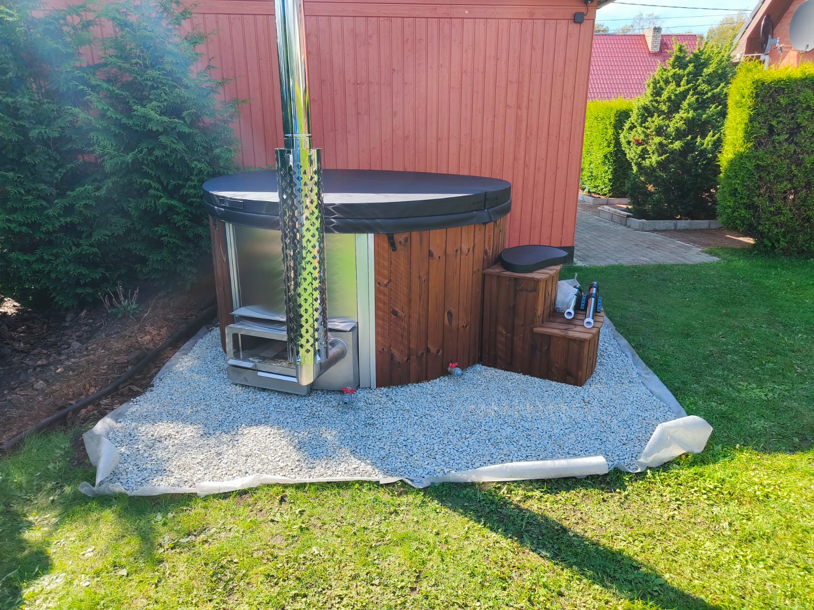 Must Pärl 3 Horisontaalse ahjuga – ∅ 2,2 m kümblustünn 8-10 inimesele – kuni 35% rohkem istumisruumi. Termokate hinnas!