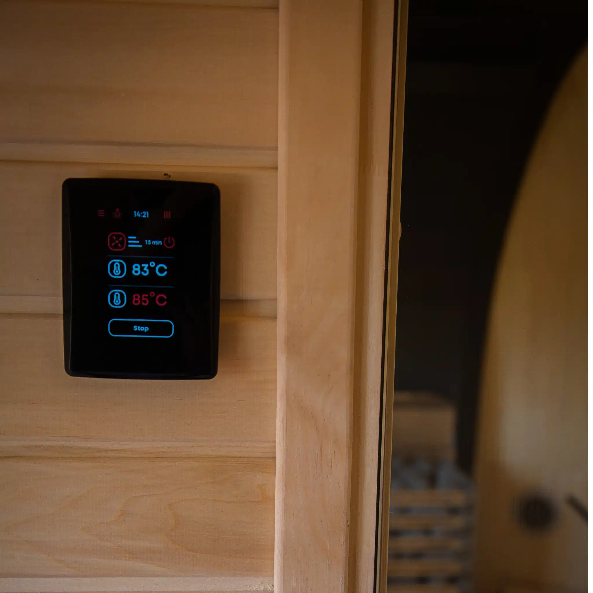 Juhtseade reguleerib ahju võimsust, tööaega ja sisekliimaseadme tööd temperatuuri- ja ukseanduri info põhjal. Täiustatud juhtloogika aitab hoida leiliruumis ühtlaseid tingimusi ning vähendada energiakulu.