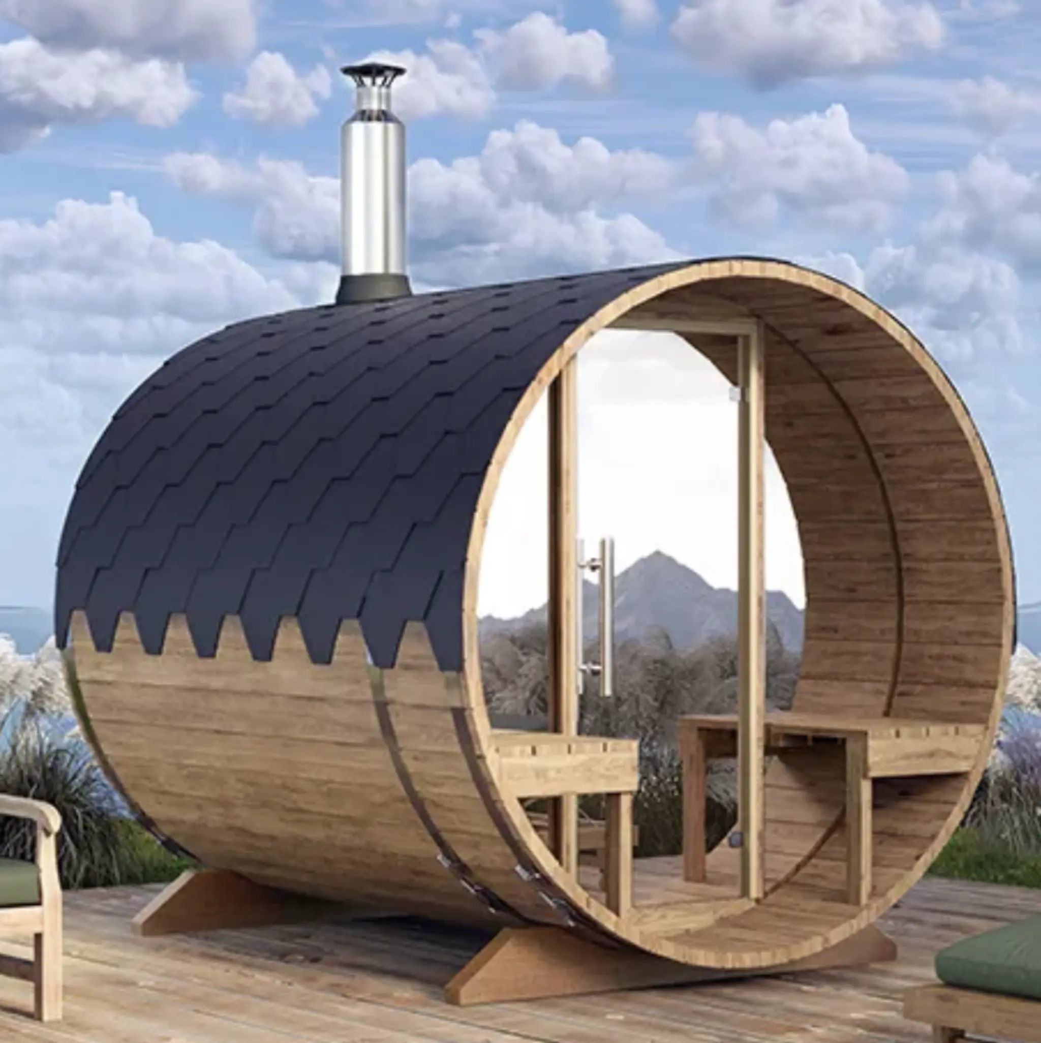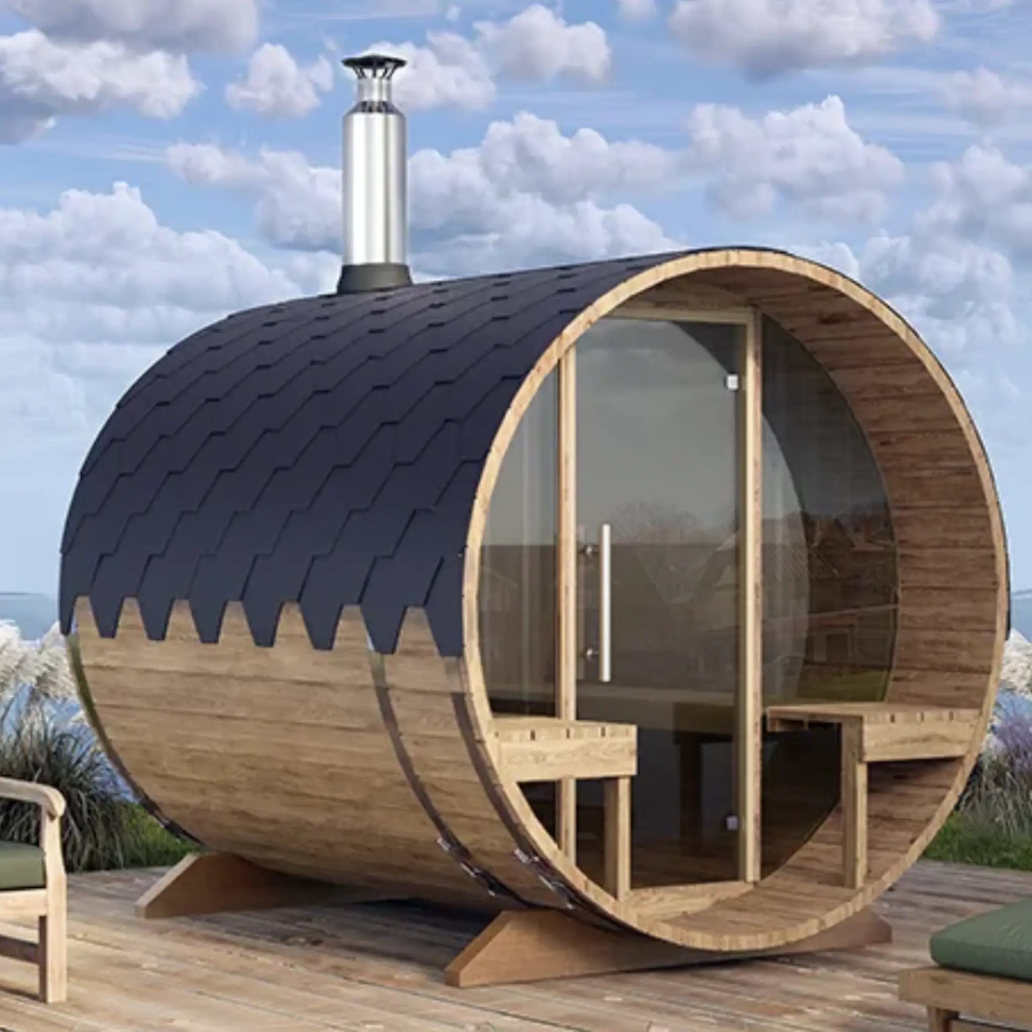 Selles tünnisaunas on hubane leiliruum 4-5 inimesele ja väike puhkeala välimiste istmete kujul. Termopuidust välissauna ostes valite vastupidavama ja lagunemiskindlama toote kui äsja tavalisest kuusest valmistatud. Täiustades seda mudelit kasulike tarvikutega, saate personaalselt kohandatud välissauna, mis võtab arvesse kõiki teie soove. Tünnisaun on saadaval nii kokkupandud kui ka kokkupandamata versioonina. Ostes selle välissauna, saad suurepärase hinna-kvaliteedi funktsionaalsuse tasakaalu ning täiusliku kingituse oma tervisele.