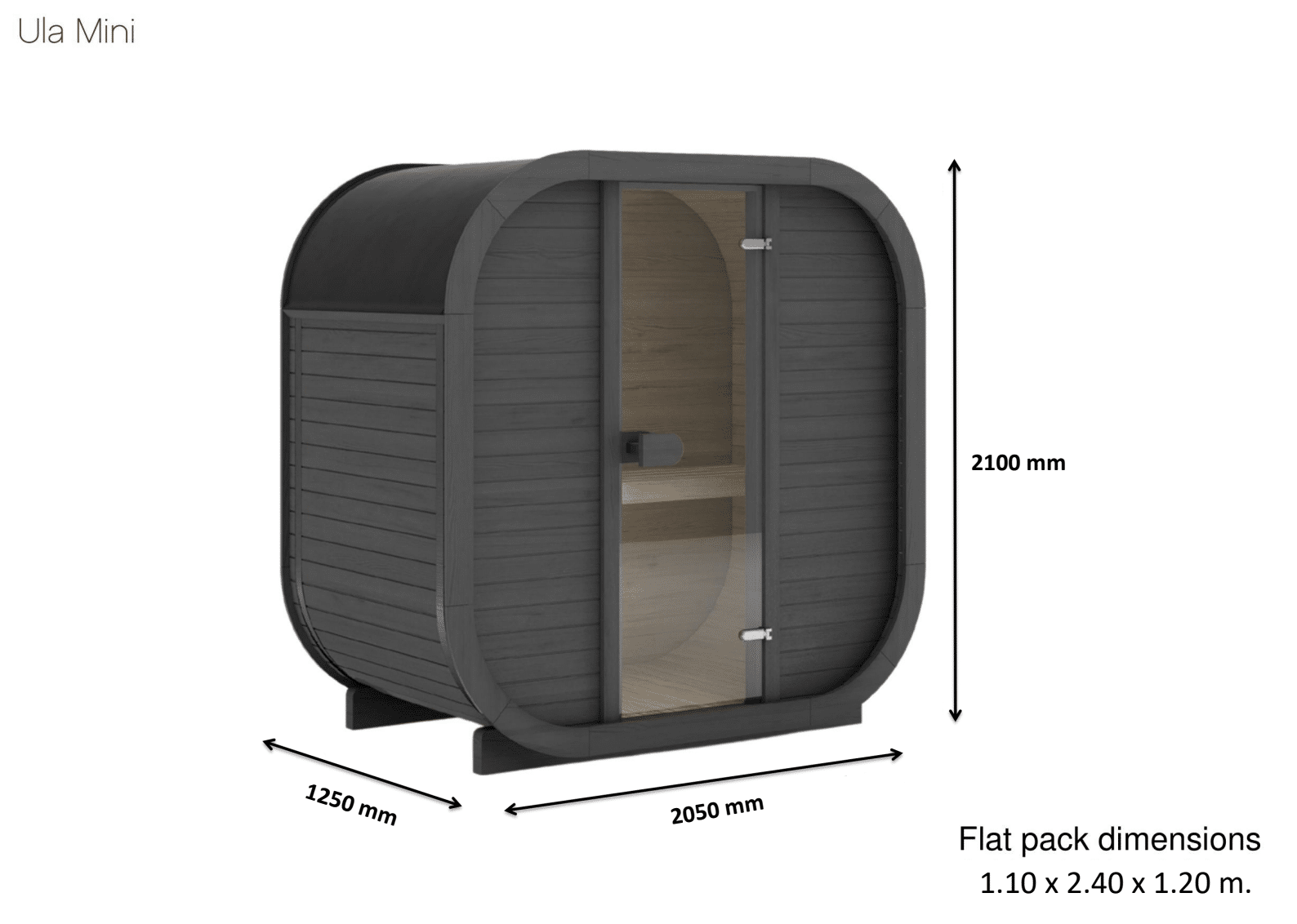 Kaasaegne saun iseloomuliku ümara disainiga, mis eristub traditsioonilistest vormidest. Selle puhtad jooned ja funktsionaalne planeering muudavad selle ideaalseks valikuks nii linnakeskkonda kui ka looduslähedastesse paikadesse.