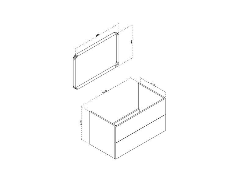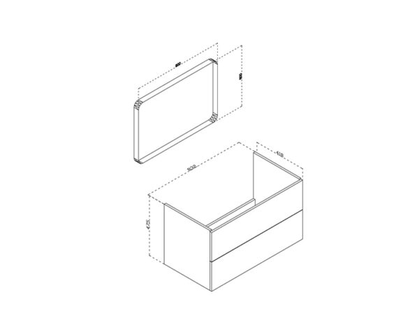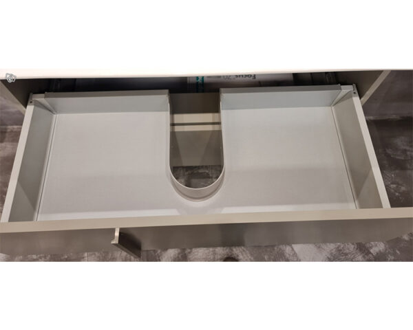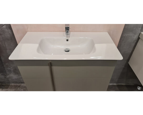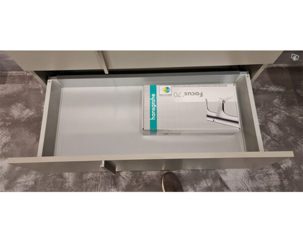 Komplektis on sõltuvalt esikomplektist valamukapp, kraanikauss, segisti, veelukk, peegel, Blumi kvaliteetsed furnituurid ja tõmmits. Mööbel tarnitakse kokkupanduna.