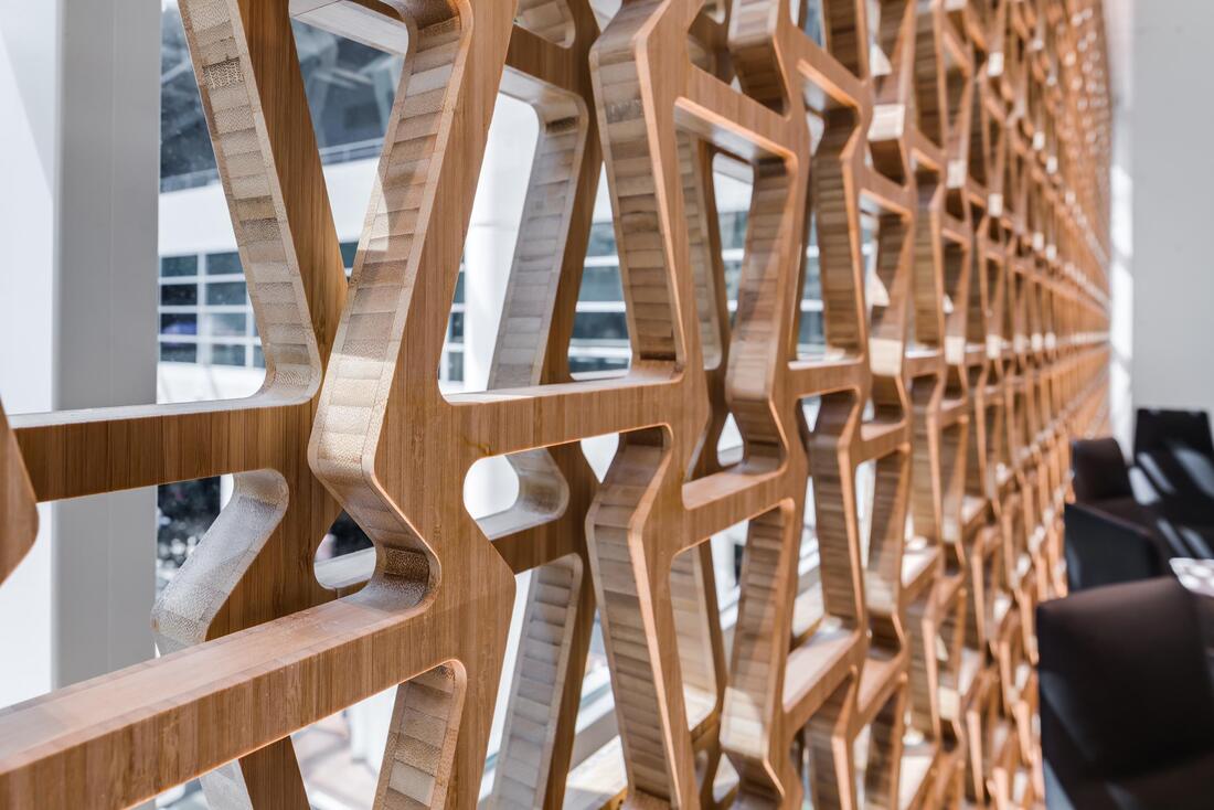 Televiestintäyhtiö Orangen uusi pääkonttori Pariisin lähellä Issy-les-Moulineaux on sisustustoimisto Viguierin suunnittelema. Bambu on yksi kolmesta hallitsevasta materiaalista, ja arkkitehdit eivät pelänneet käyttää bambu pintamateriaaleja monin eri tavoin: