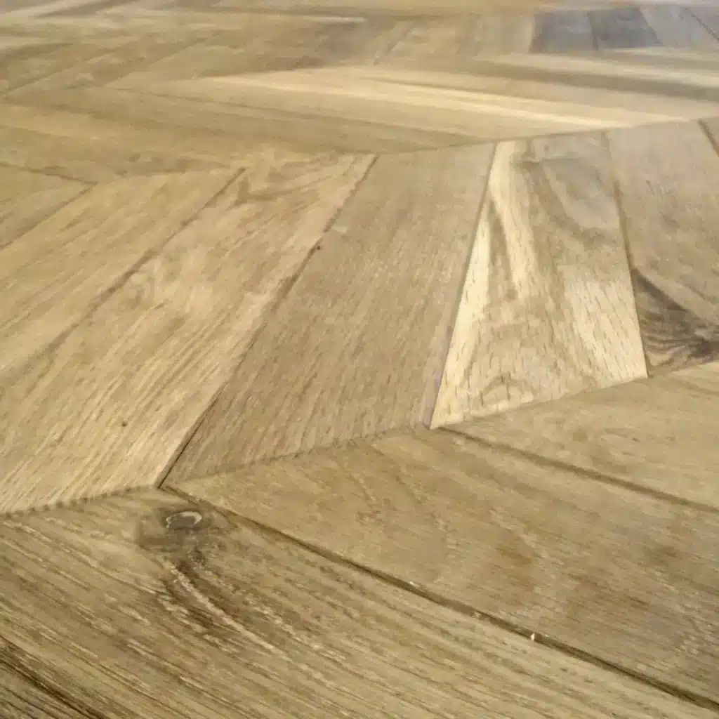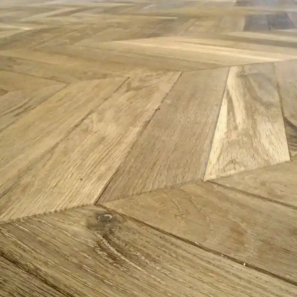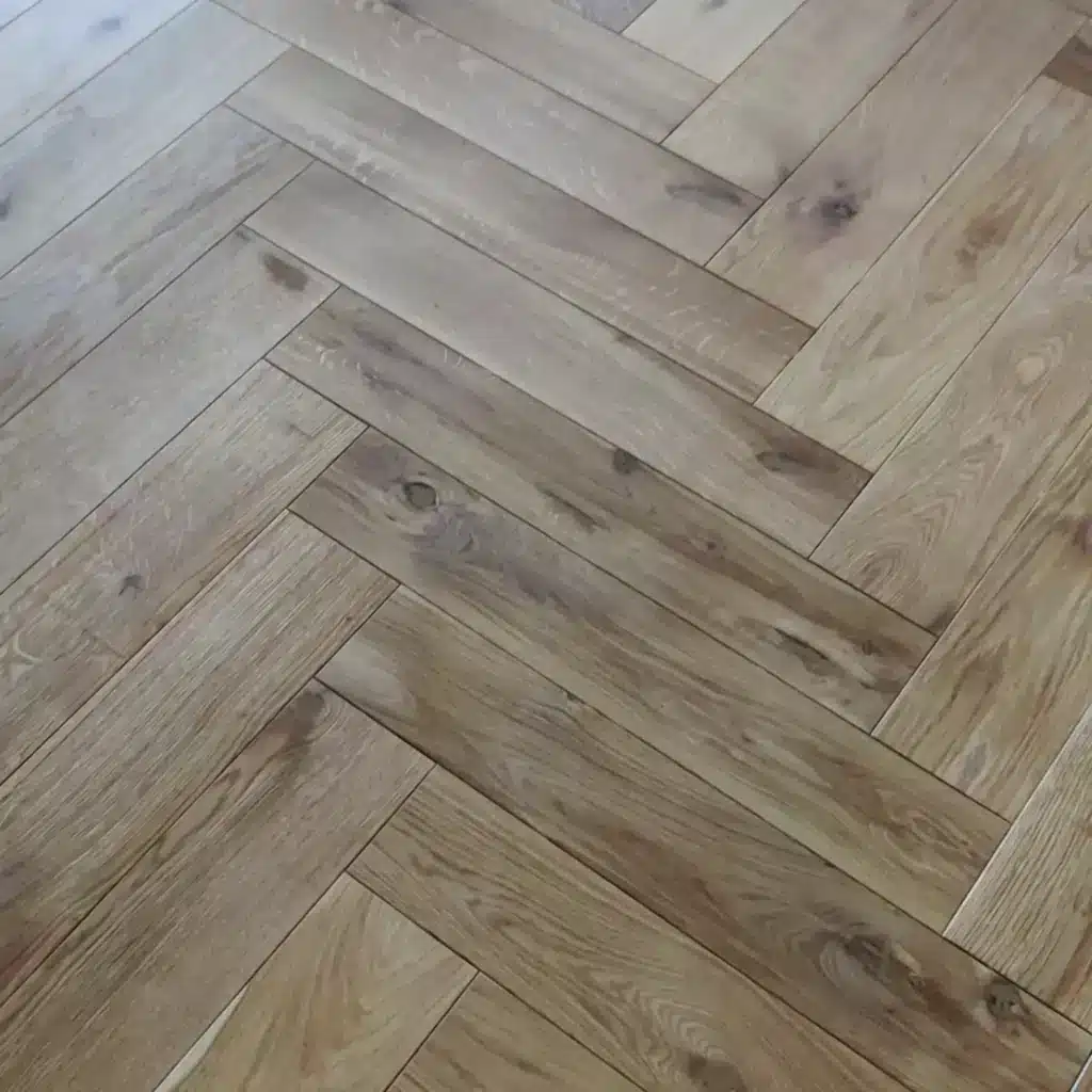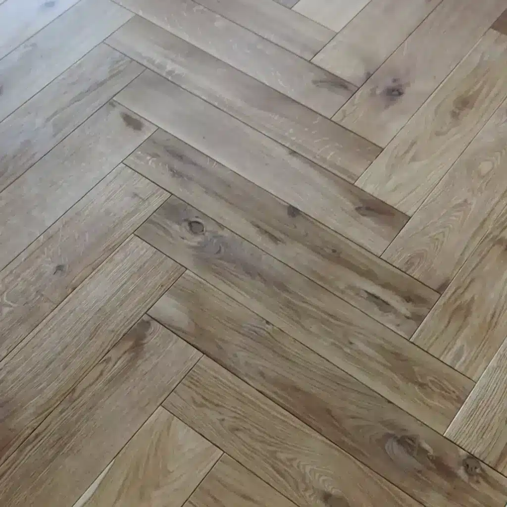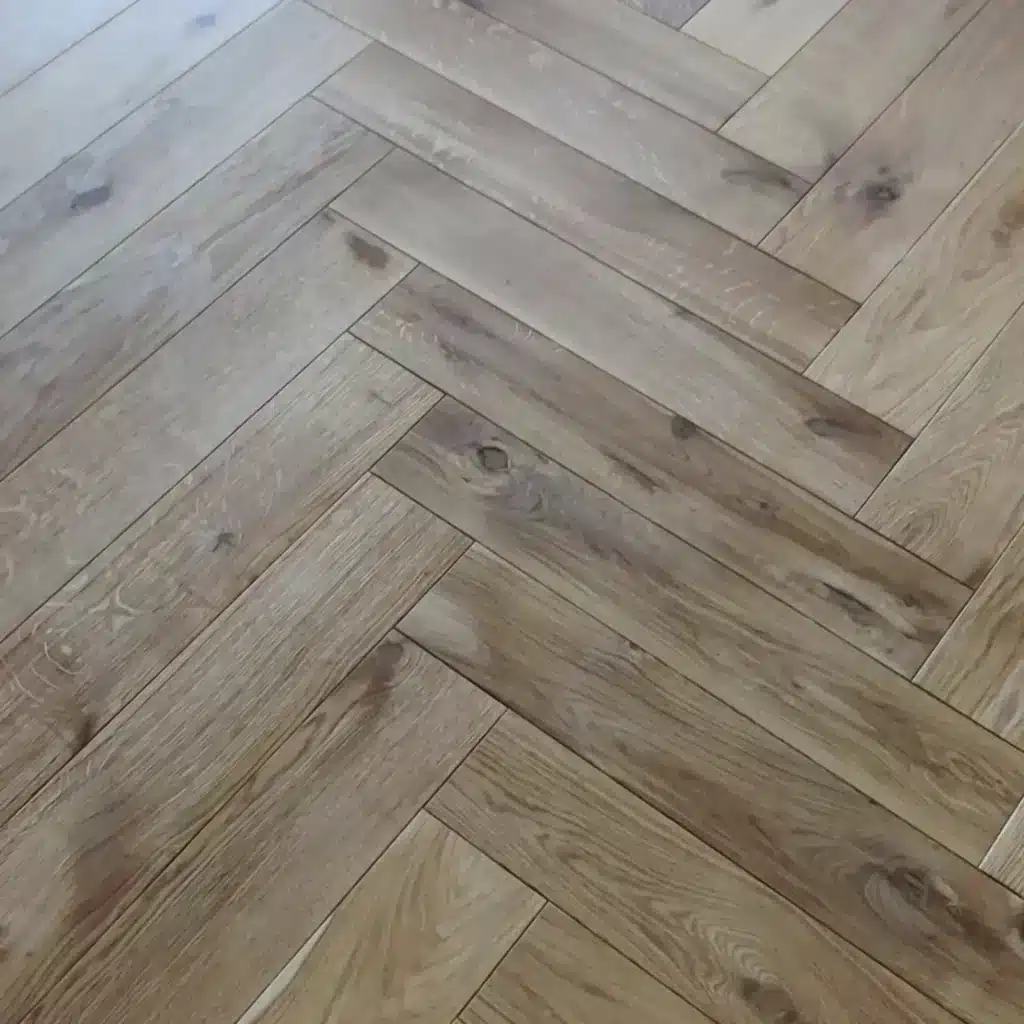 Woodengold tammi ranskalainen kalanruotoparketti chevron 45°/60° T&G rustiikki (120×650 mm)