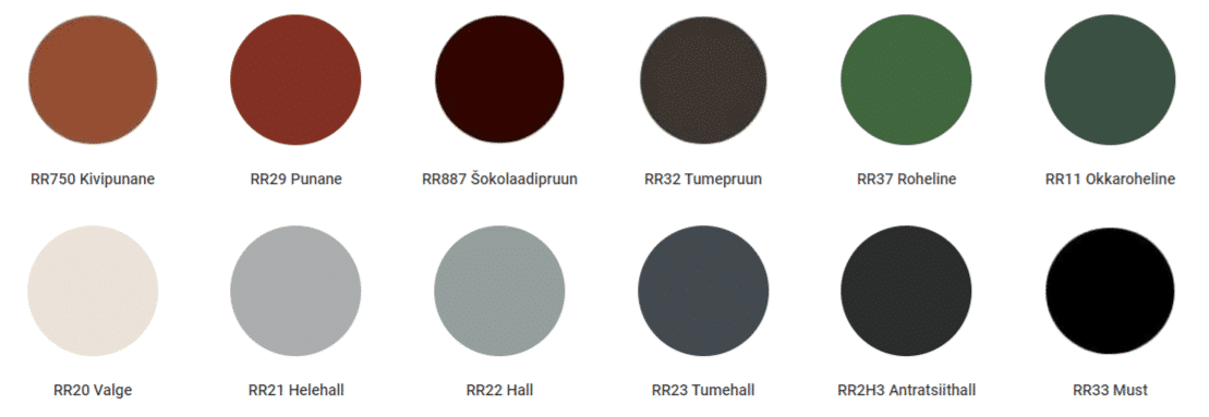 Kehyksen värivaihtoehdot RAL-värikartasta.