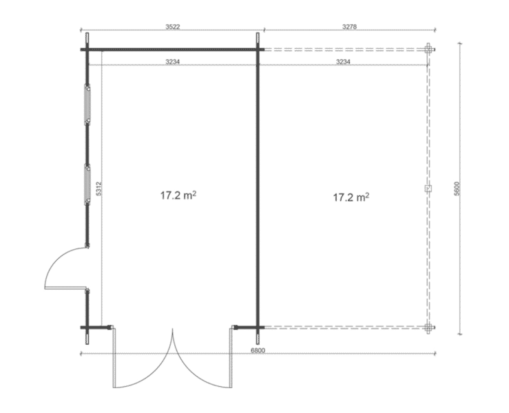 Ulkomitat (leveys x pituus): 6,8 m x 5,6 m