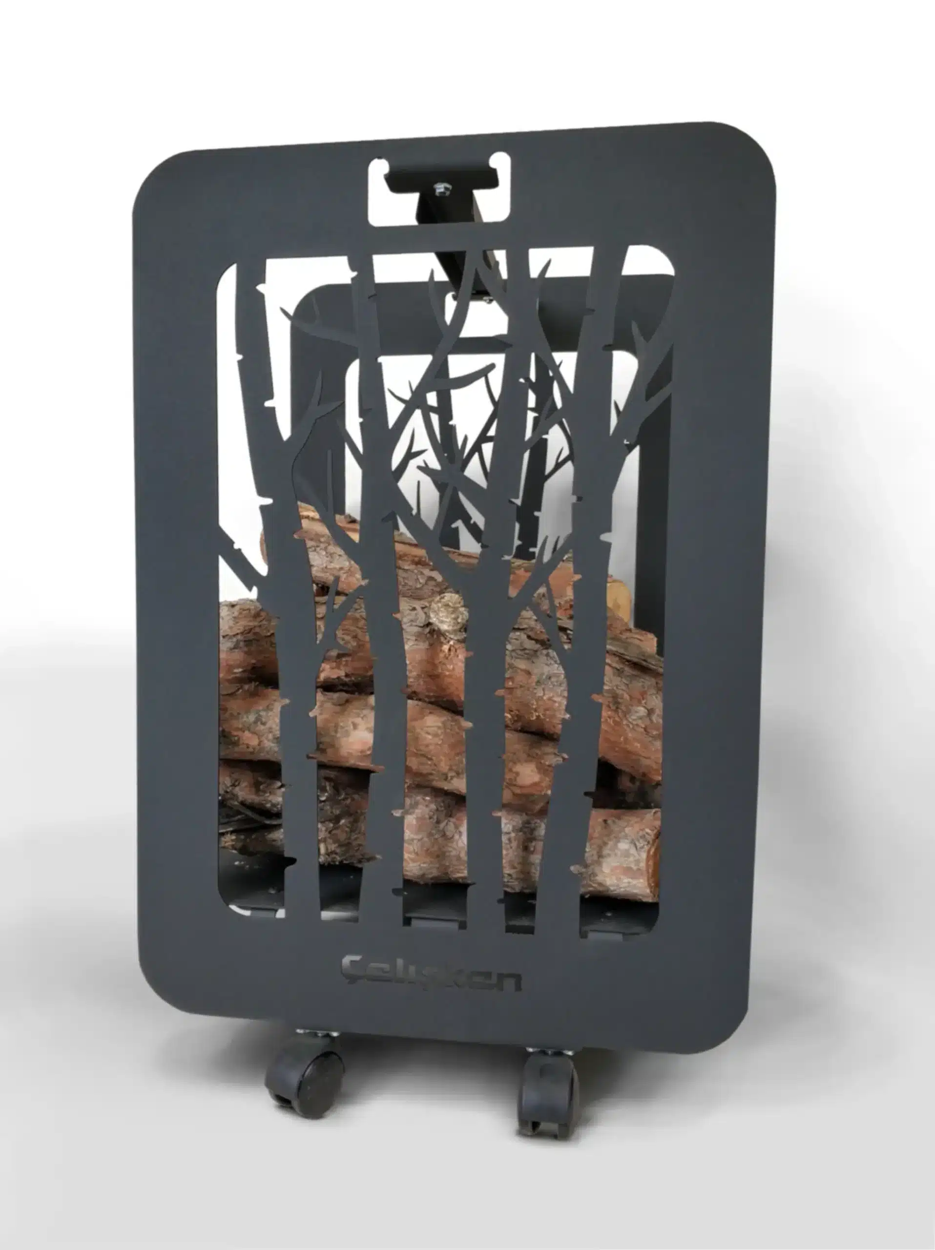 Çalışkan 602 polttopuukori pyörillä. Tyylikäs ja kestävä 80 litran polttopuukori. Sopii takan, kamiinan tai saunan viereen.