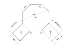 Muoto: kahdeksankulmainen + 2 suorakulmiota
