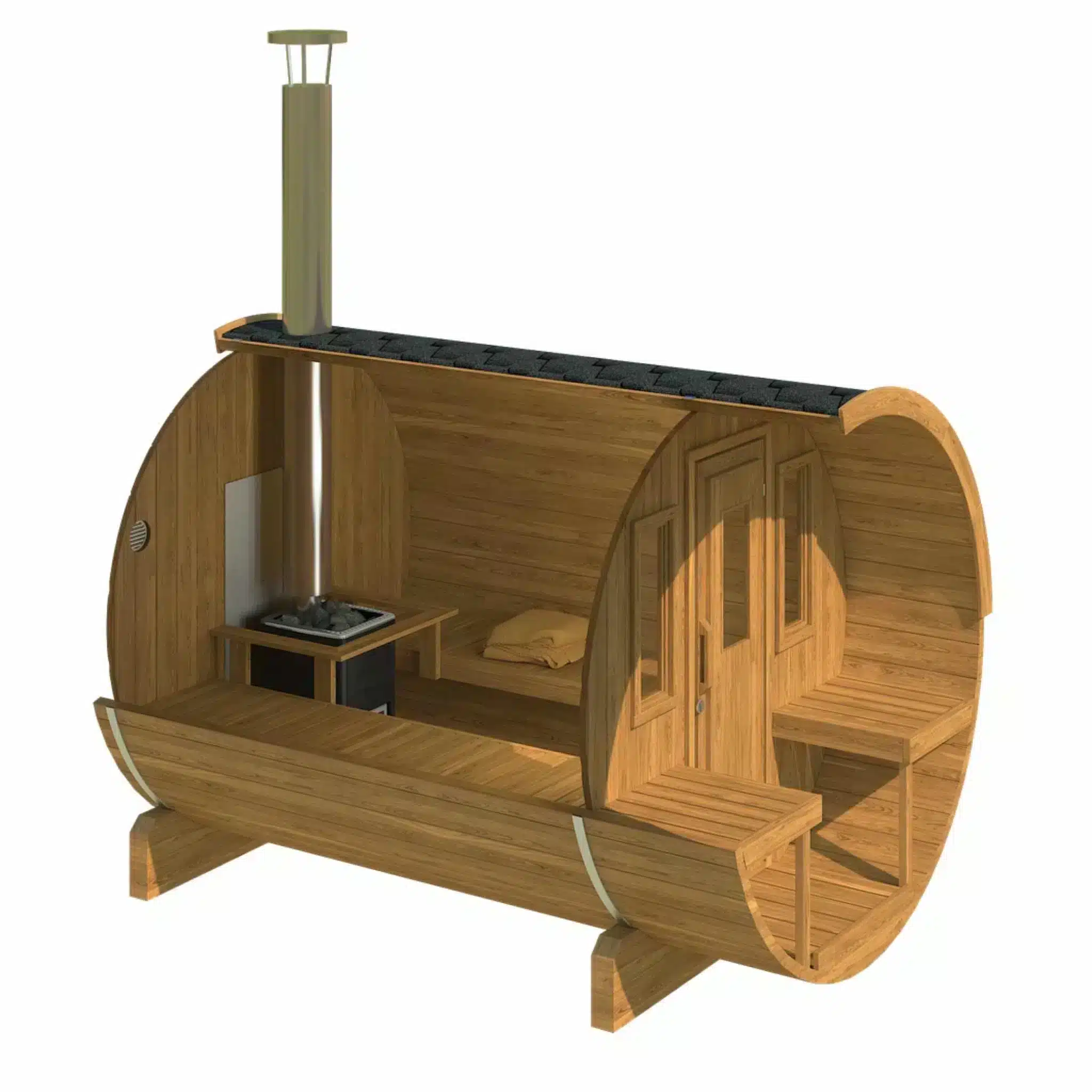 Ehala 250 termopuinen tynnyrisauna – Kompakti rentoutus 6 hengelle.