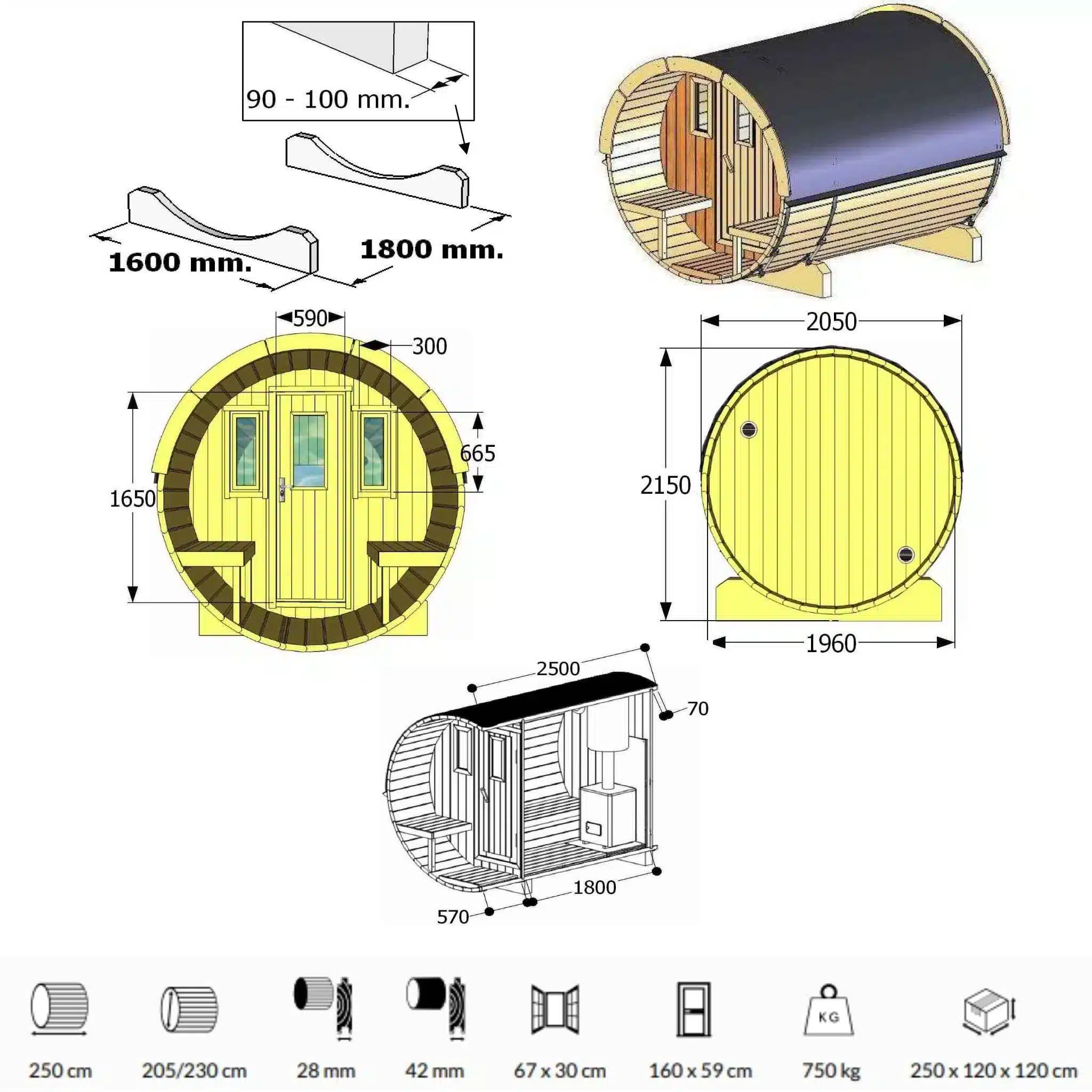Perinteinen tynnyrimuoto varmistaa tehokkaan lämmönkierron ja miellyttävän saunakokemuksen. Helposti koottava ja kestävä Ehala 250 tynnyrisauna tarjoaa viihtyisän paikan rentoutumiseen, olipa kyseessä yksityinen hengähdyshetki tai mukava yhdessäolo perheen ja ystävien kanssa.