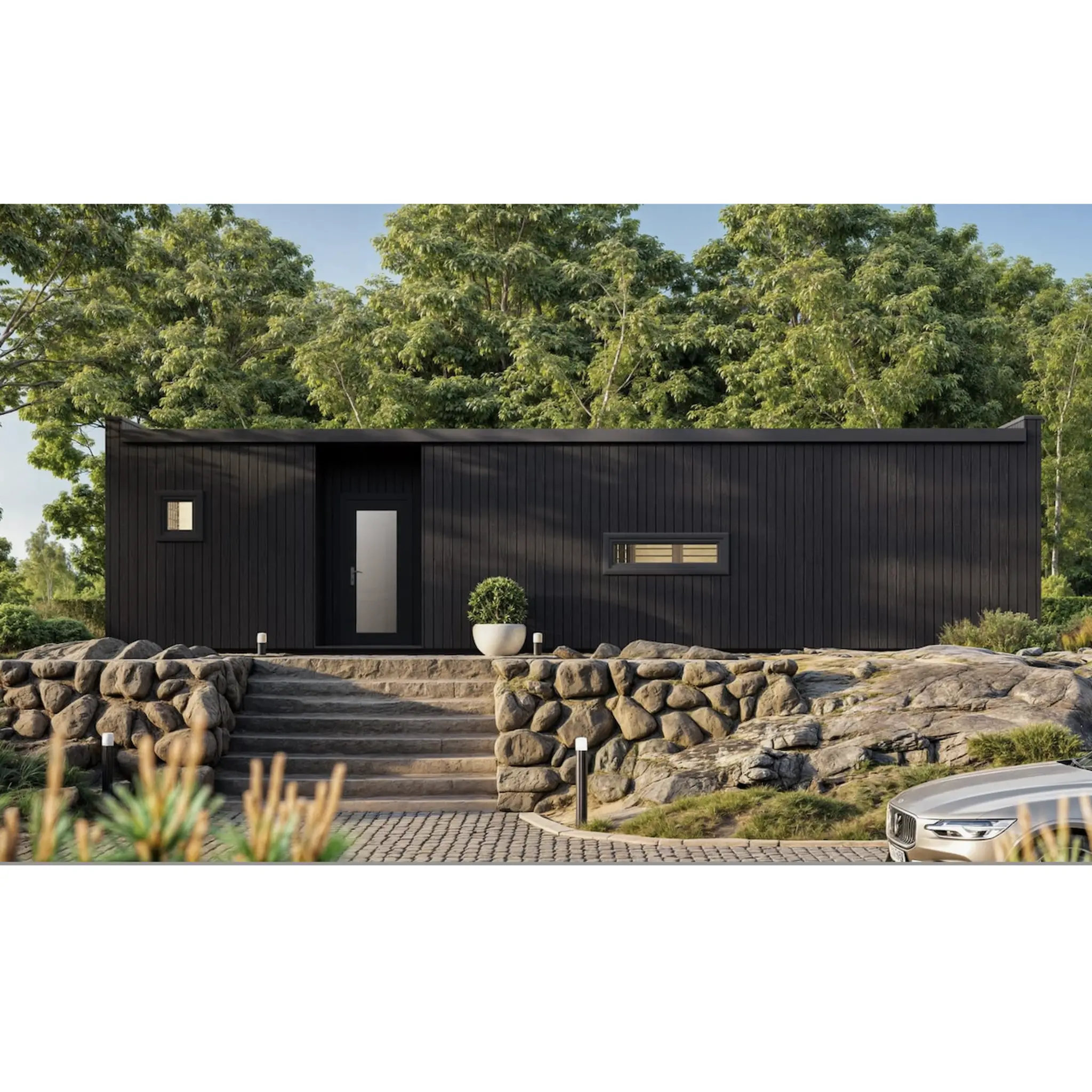 Eristetty pientalo NORDIC-L 5,74 × 11,94 m – nykyaikainen kompakti koti, joka yhdistää skandinaavisen käsityötaidon ja modernin asumismukavuuden. Sertifioidusta pohjoismaisesta kuusesta tai männystä rakennettu talo on suunniteltu energiatehokkaaksi, kestäväksi ja tyylikkääksi, tehden siitä ihanteellisen ratkaisun pysyväksi asunnoksi, lomakodiksi tai vierastaloksi.