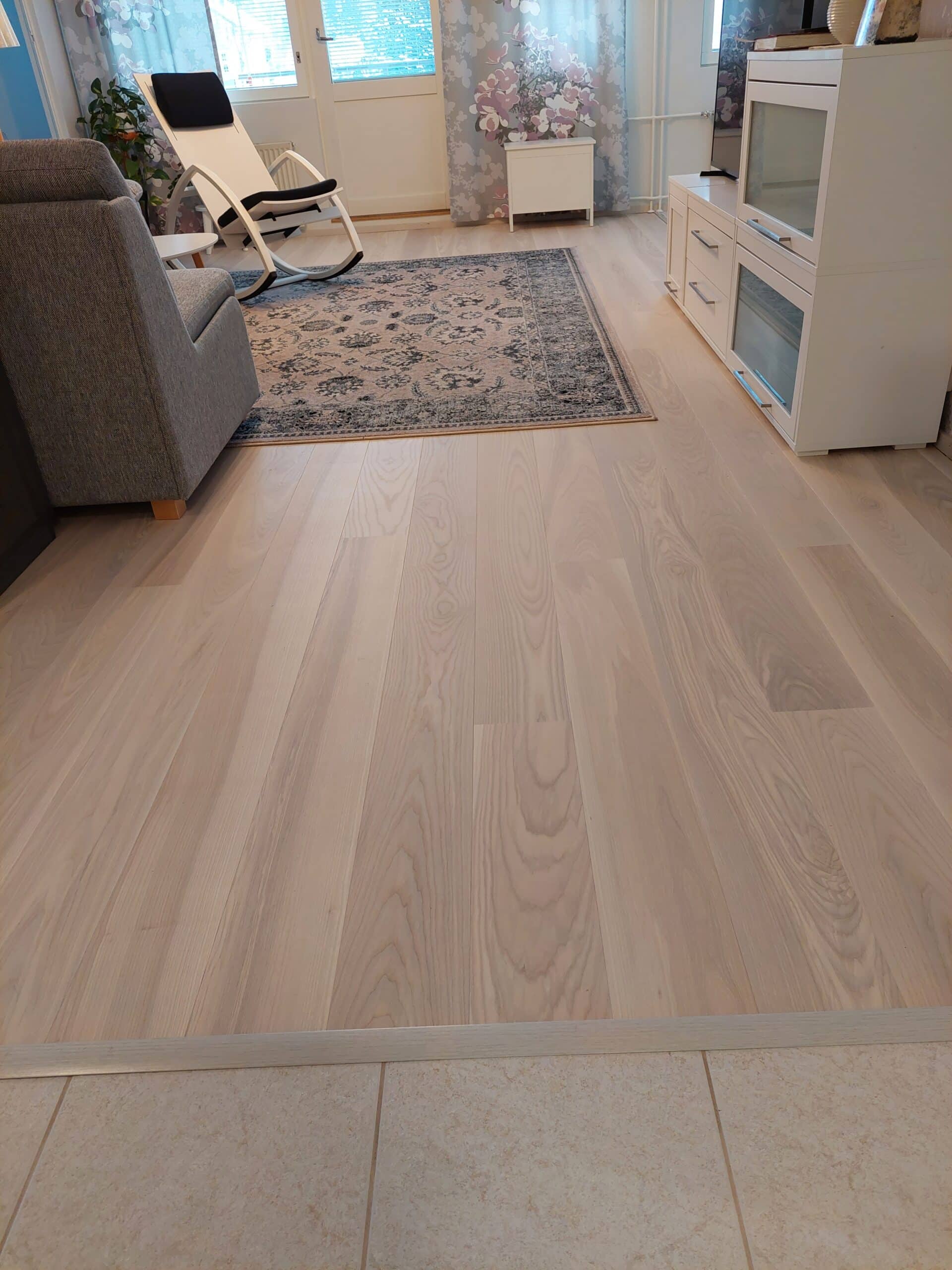 Arvopuun pintakerros on n. 3,5 mm paksu, mikä mahdollistaa useiden lattian hiontojen tarpeen vaatiessa.