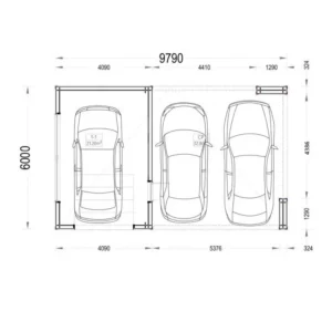Moderni eristetty autotalli 36 m²:n autokatoksella. Ensiluokkaista pohjoismaista puuta, 44 mm + 100 mm eristetyt seinät, mukautettavat ovet ja katto. Ihanteellinen koteihin ja rakennusprojekteihin.