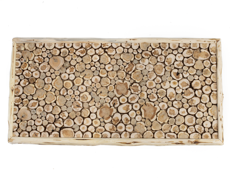 Paneeli on valmistettu kosteutta kestävästä vanerista ja aluslevyistä, jotka on leikattu katajan varresta.