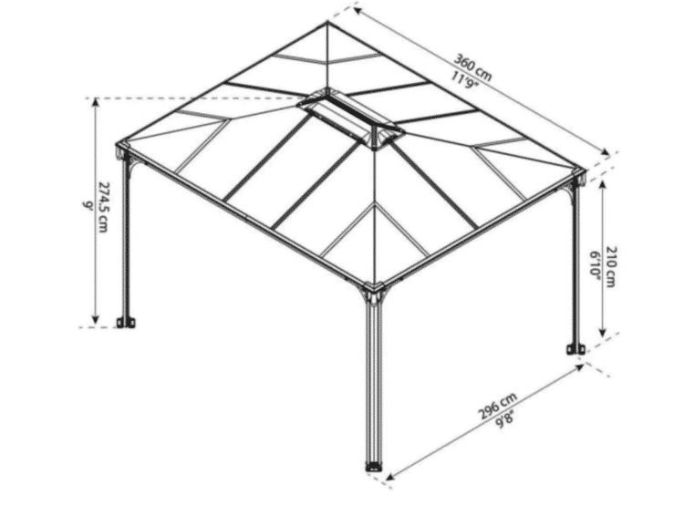 Palram-Canopia MARTINIQUE 3600 on kestävä ja tyylikäs katos. Paviljongissa on luja, ruosteenkestävä ja antrasiitinharmaa jauhemaalattu alumiinirunko sekä sinkitystä teräksestä valmistetut liitokset. Käytännössä rikkoutumattomat, 100% UV-suojatut 6 mm polykarbonaattipaneelit suojaavat haitallisilta UV-säteiltä, sateelta ja lumelta.