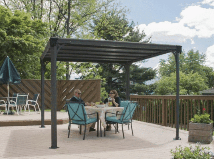 Palram-Canopia Milano 3000 on kestävä ja tyylikäs katos. Paviljongissa on luja, ruosteenkestävä ja antrasiitinharmaa jauhemaalattu alumiinirunko sekä sinkitystä teräksestä valmistetut liitokset. Käytännössä rikkoutumattomat, 100% UV-suojatut 6 mm polykarbonaattipaneelit suojaavat haitallisilta UV-säteiltä, sateelta ja lumelta.