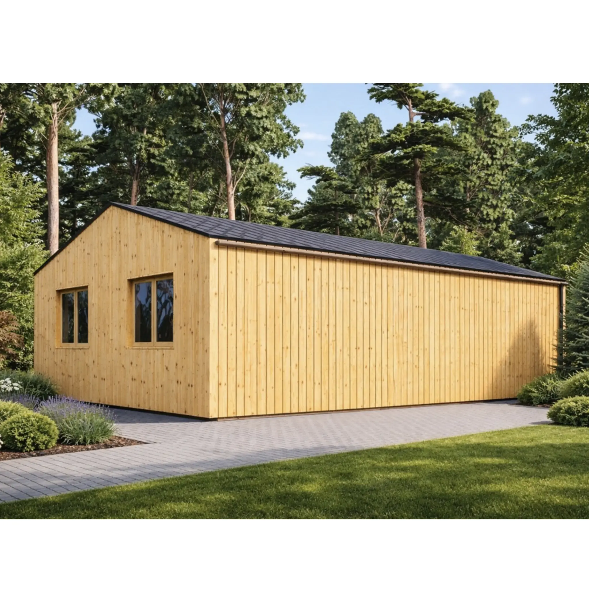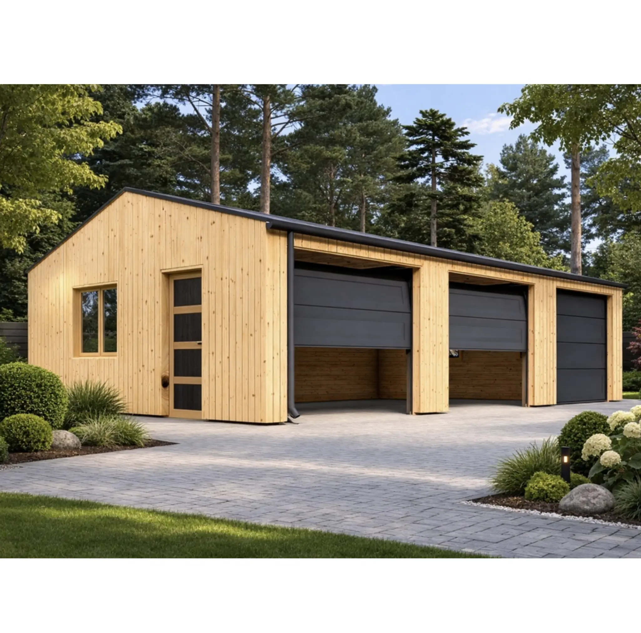 Kolmipaikkainen puinen autotalli Scandic Triple tarjoaa kolme tilavaa autopaikkaa tyylikkäässä ja modernissa kokonaisuudessa, jota kelpaa esitellä. Sen kompaktia ulkonäköä korostaa harjakatto sekä selkeät ja siistit linjat. Sisätilaa on 49 m², mikä tarjoaa runsaasti tilaa ajoneuvojen turvalliseen pysäköintiin ja suojaamiseen sääolosuhteilta. Nauti Scandic Triple -mallin mukavuudesta erinomaisella hinnalla!