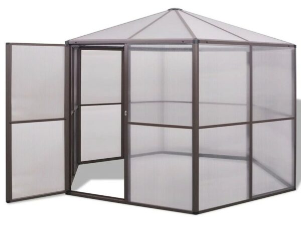 Kuusikulmainen kasvihuone on suunniteltu erilaisten puutarhakasvien viljelyyn.