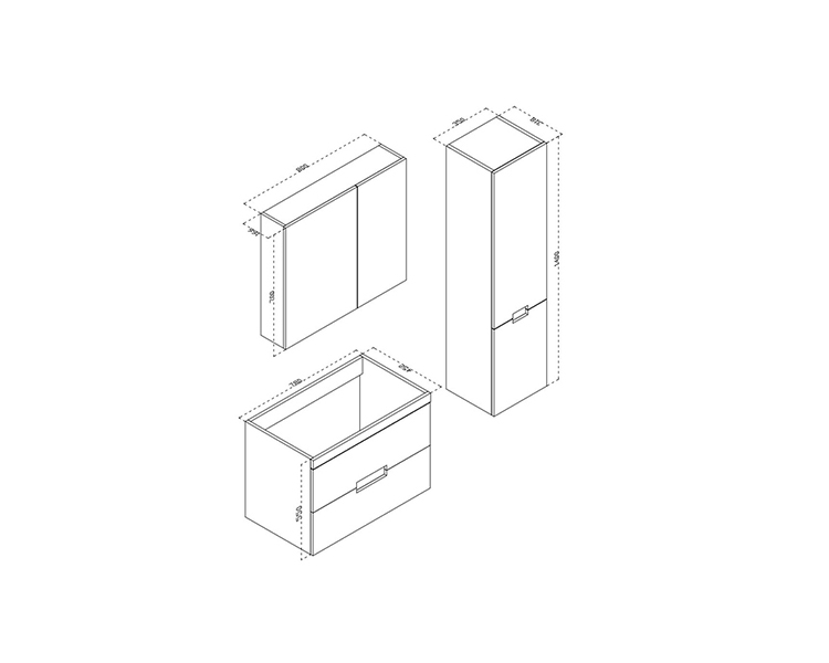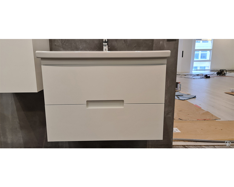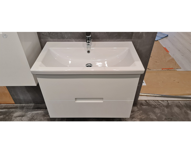 Ryhmä sisältää allaskaapin, mustan lasitason ja altaan, hanan, vesilukon, peilin, Blumin korkealaatuiset helat sekä vetimen etusarjasta riippuen. Kalusteet toimitetaan koottuna.
