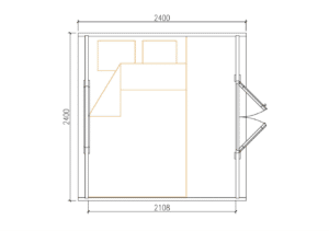 Ulkopuoliset mitat: 2,4 m x 2,4 m