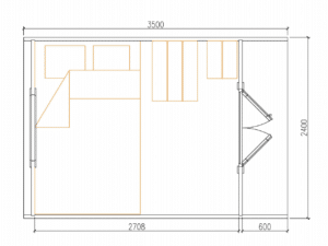 Ulkopuoliset mitat: 2,4 m x 2,4 m