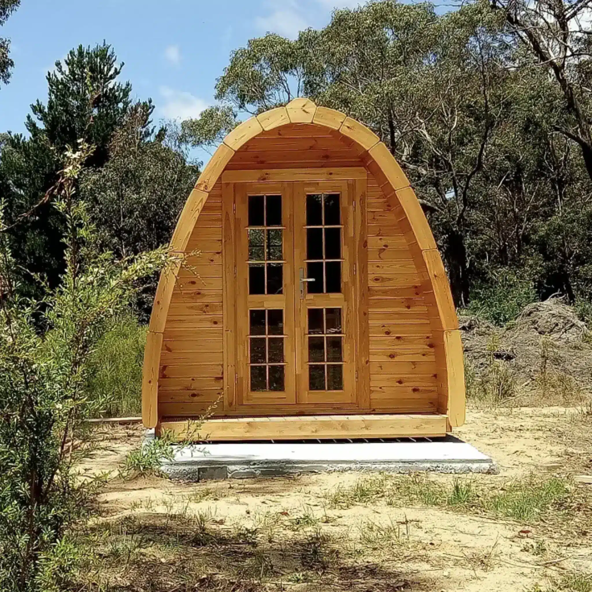 Leirintämökki, jota kutsutaan myös Glamping Podiksi, on erinomainen valinta ulkoilmassa asumiseen. Se tarjoaa kodikkaan, mukavan ja tilavan majoituksen jopa 4-6 henkilölle. Sen poikkeuksellinen muoto sulautuu maisemaan tehden näkymästä luonnollisen ja houkuttelevan.