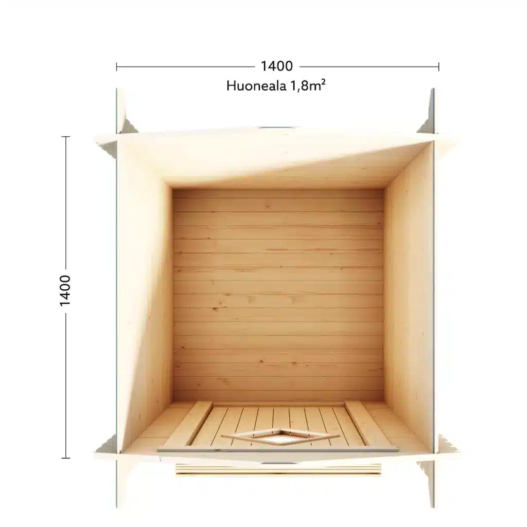 Toilet 15 on valmistettu 28 mm kevythirrestä. Sen pohjan koko on 140 x 140 cm. Harjakorkeus on 260 cm ja sivuseinäkorkeuus 223 cm. Toilet 15 on tarkoitettu käytettäväksi erikseen ostettavan käymäläastian kanssa, joita on saatavilla monenlaisia. Toilet 15 sisältää umpilattian, ja siinä voidaan käyttää sekä lattian päälle asennettavaa että lattiaan upotettavaa käymäläastiaa. Käymäläastian tarvitsema aukko lattiaan tehdään asennusvaiheessa.