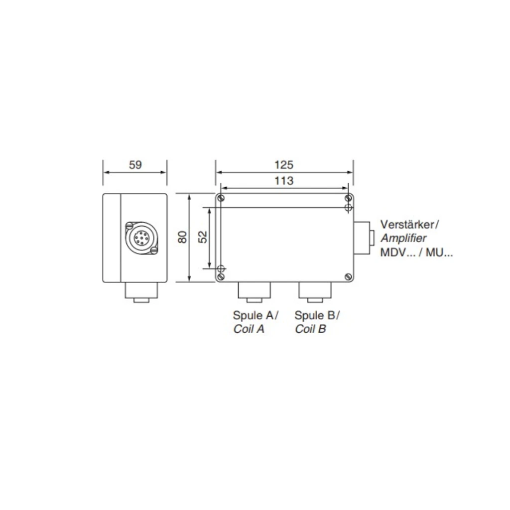 Käyttämällä MA 125-liitäntärasiaa, kaksi ilmaisinkelaa voi toimia yhdessä yhden MDV/MDVH-vahvistimen kanssa. Enimmäiskaapelin pituus kelan ja MA 125-liitäntärasian välillä on 3 m.