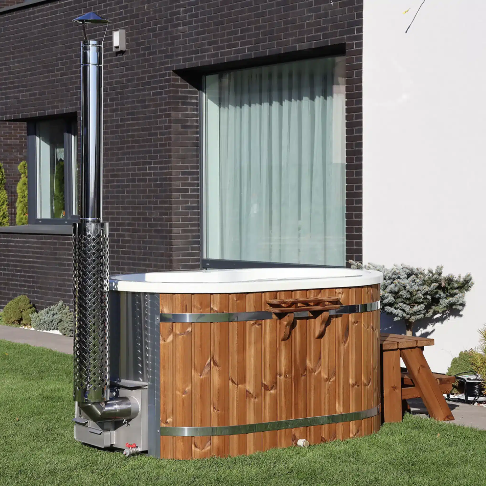 Ofuro integroidulla lämmittimellä ja akryylisisuksella on ylellinen ja ympäristöystävällinen tapa nauttia rentouttavasta kylvystä missä tahansa vuodenajassa. Se mahtuu mukavasti jopa kahdelle henkilölle. Vakiosettiin kuuluu puinen tikkaat, puuhylly, lämpömittari ja mela. Tämä ofuro on valmistettu korkealaatuisesta puusta: Siperian kuusesta, lämpökäsitellystä puusta tai Siperian lehtikuusesta. Ovaalin muotoinen, noin 800 litran vesisäiliö. Ofuro toimitetaan 2-4 viikon kuluessa.