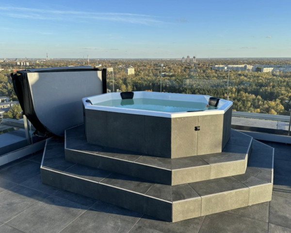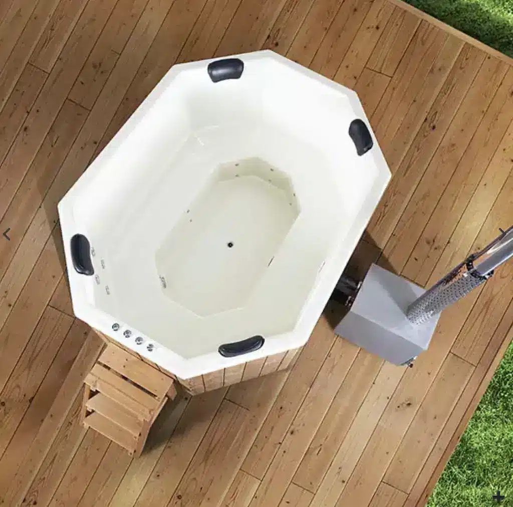 Uusi malli oktagonaalisesta kuumavesisarjasta on tullut tilavammaksi ja mahtuu jopa 9 henkilöä. Tässä kuumavesialtaassa yhdistyvät luonnolliset materiaalit ja modernit. Kuumavesialtaan ulkopuoli on peitetty lämpöpuulla. Kuumavesialtaan sisäosa on valmistettu premium Eurooppalaisesta komposiittimateriaalista nimeltään lasikuitu, joka takaa erittäin korkean ympäristönkestävyyden, helpon ylläpidon ja pitkän käyttöiän. Lasikuitu on saatavana eri väreissä, jotta se sopii piha-alueen yleiseen suunnitteluun. Voit päivittää perussetin kylpylälaitteistolla ja valita joko puulämmitteisen tai sähköisen uunin.
