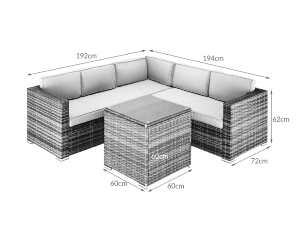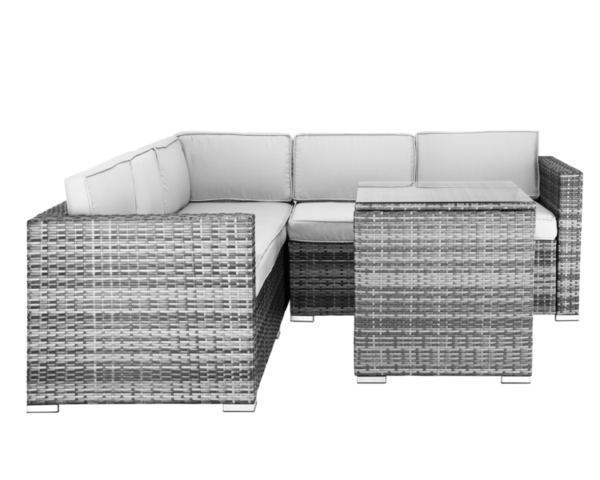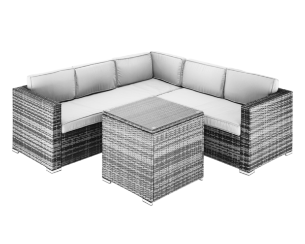 Oleskeluryhmä Napoli sisältää 5-istuttavan kulmasohvan sekä lasikannella varustetun sohvapöydän. Polyrottinki on laadukasta, säänkestävää ja huoltovapaata materiaalia. Muhkeat pehmusteet sisältyvät toimitukseen. Pehmusteet säilyttävät parhaiten ominaisuutensa, kun säilytät niitä esimerkiksi kuivassa laatikossa silloin kun ne eivät ole käytössä.