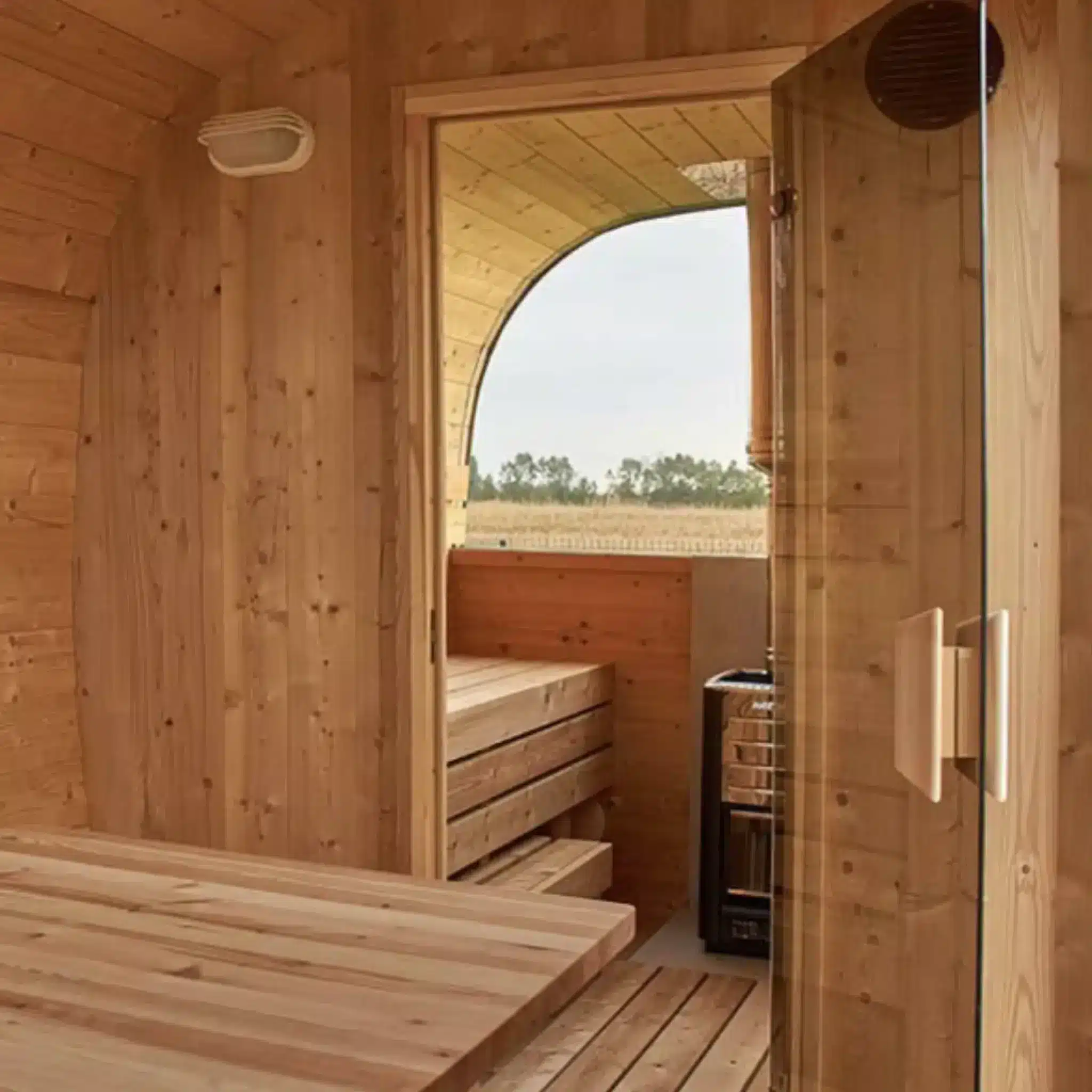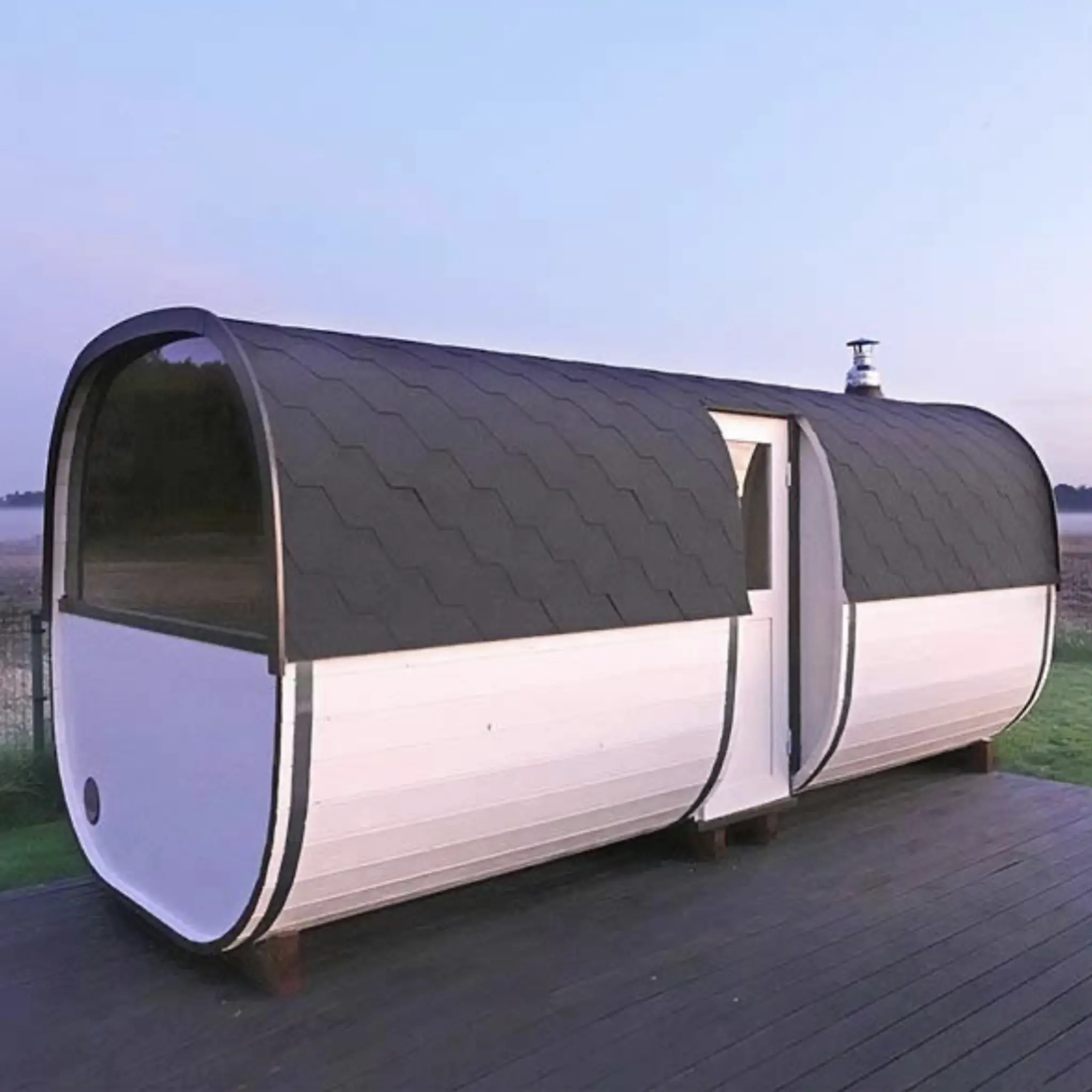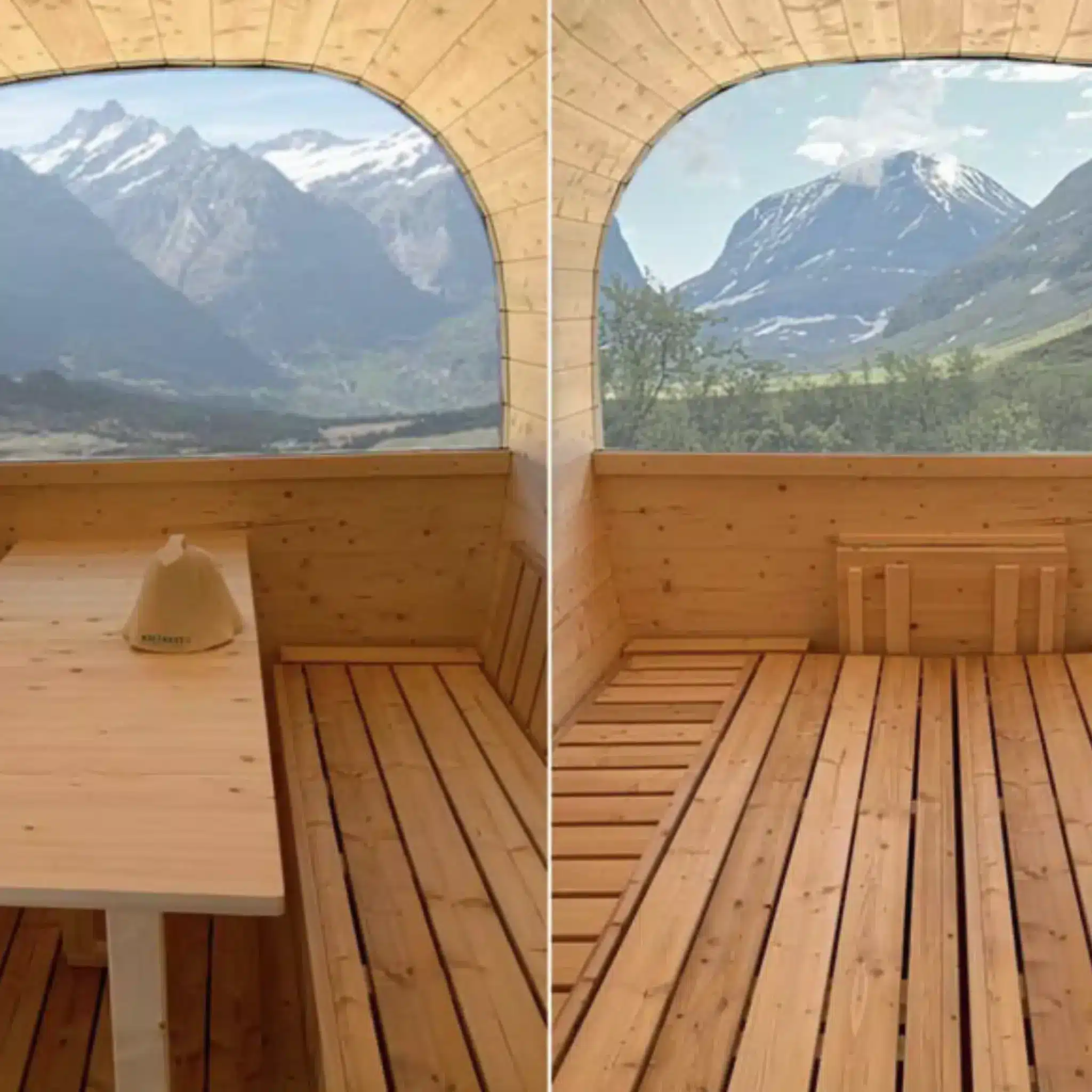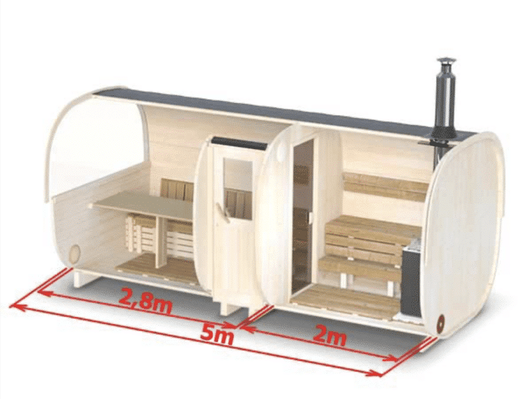 Voit parantaa 5 m ulkosaunaa lisäämällä siihen hyödyllisiä lisävarusteita, kuten pyöreän maisemaikkunan, LED-valon löylyhuoneeseen, vesitankin ja paljon muuta.