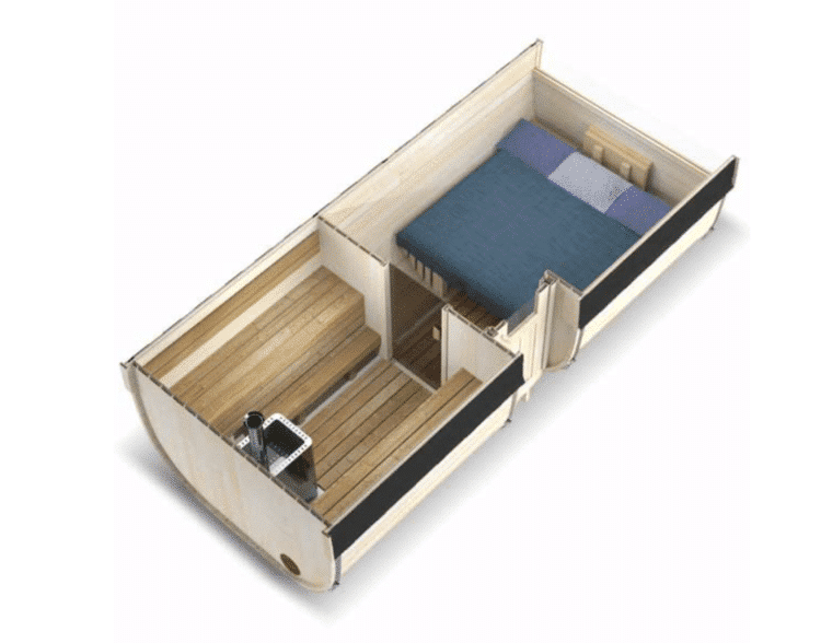 Tämä valikoimastamme pieni pihasauna on täynnä innovatiivisuutta ja toiminnollisuutta. Pukuhuoneella varustettu pieni pihasauna on 2-in-1-malli, sillä pukuhuoneen istuimet ja pöytä voidaan muuttaa 2,1 x 1,8 m vuoteeksi, mikä tekee tuotteesta erinomaisen ratkaisun niille, jotka haluavat viettää aikaa luonnossa ystävien ja perheen kanssa.