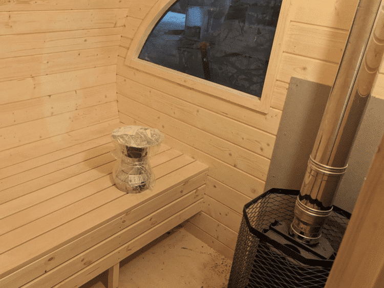 Yksi leveä saunanpenkki (mahtuu 4 henkilöä) tai L-muotoinen saunanpenkki (mahtuu 5-6 henkilöä). Penkit valmistettu haavasta.
