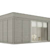 Tämä saunakuutio koostuu kahdesta liitetystä rungosta: 3286 x 4286 mm + 3286 x 2286 mm. Runko on valmistettu liimalevystä kuusipuusta. Runko koostuu alarungosta (100 x 160 mm), pylväistä (140 x 140 mm) ja yläkehikosta (140 x 200 mm) ja kestää 183 kg/m2 kattokuorman.