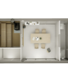 Saunan sisällä: Saunan penkit ovat lehtipuuta; alumiiniset liukuovet (3 kiskoa) ovat 3000 x 2000 mm. Puinen suihkuovi (kuusesta) – 990 x 2195 mm; lasiovi saunatilaan – 698 x 1855 mm.