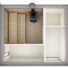 1000 x 2200 mm seinät ovat kuusipuuta. Kevyet, kullanvalkoiset kuusipuut ovat ihanteellisia kuutioiden rakennussuunnittelussa.