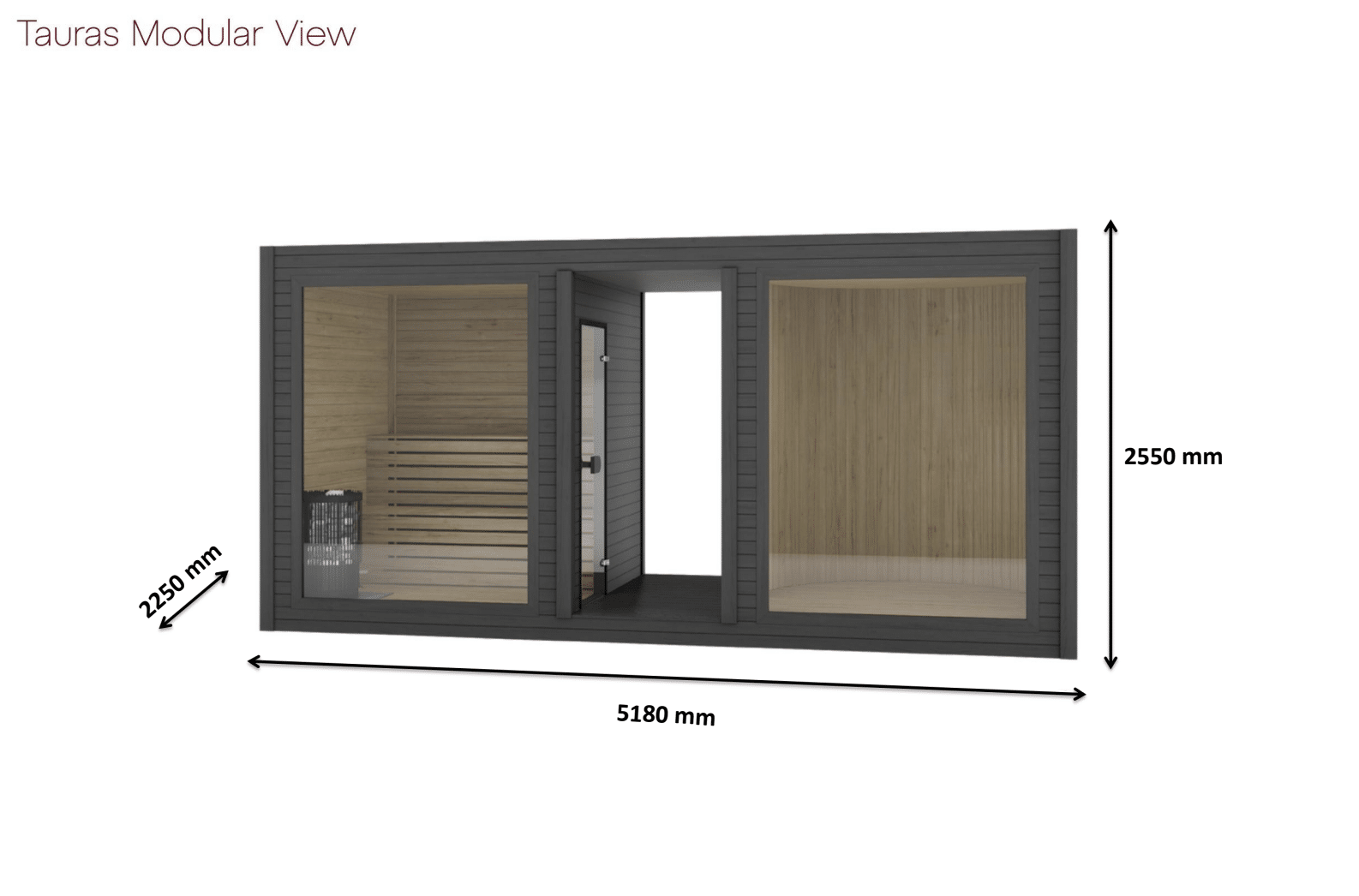 Tauras Modular View vie modulaarisen kylpyläkokemuksen uudelle tasolle suuren eteen sijoitetun lasipaneelinsa ansiosta. Toisessa päässä on saunamoduuli, kun taas toinen pääty voi pysyä avoimena tai siihen voi asentaa integroidun porealtaan tai porealtaan, mikä tarjoaa joustavuutta sopia tilaan ja elämäntyyliin. Tyylikkäät materiaalit määrittelevät View-mallin, mikä tekee siitä erinomaisen valinnan luonnonkauniisiin paikkoihin.