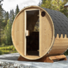 Pienikokoinen ja halpa tynnyrisauna joka sisältää löylyhuoneen. Valitsemalla tämän 3 henkilölle tarkoitetun ulkosaunan saat erinomaista laatua kohtuulliseen hintaan, sekä nopean lämmityksen.