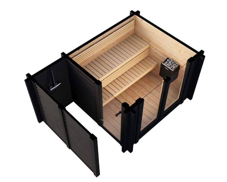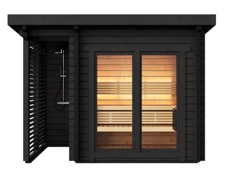 Suunniteltu ulkokäyttöön – Tämä sauna on rakennettu kestämään sääolosuhteita, ja se sopii täydellisesti ympärivuotiseen käyttöön ja tarjoaa rauhallisen pakopaikan luonnon sydämessä.