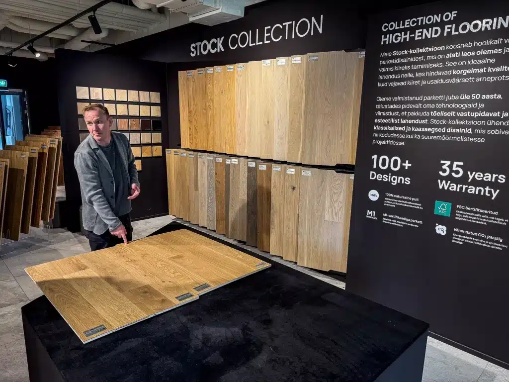 Tehtaan ja varaston jälkeen Antti esitteli meille Estaparketin showroomin Tallinnan ydinkeskustassa. Siellä pystyimme rauhassa tutustumaan koko tuotevalikoimaan sekä vertailemaan sävyjä, tekstuureja ja viimeistelyjä aidossa tilaympäristössä.
